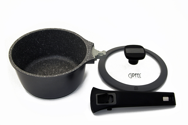 Ковш алюминиевый Gipfel Batista 2687 16 см объемом 1,4 л. Корпус всех моделей посуды серии BATISTA изготовлен из литого алюминия, толщина стенок которого составляет 2 мм, а толщина дна – 4,5 мм. Надежность материала в сочетании с толщиной корпуса гарантирует долгий срок службы посуды. Стоит отметить трехслойное антипригарное покрытие Ilag Ultimate, съемные ручки и возможность использования посуды данной серии на индукционных плитах. Объем данного ковша составляет 1,4 литра. Диаметр дна 14 см.