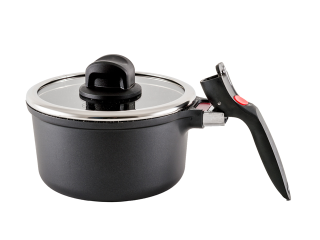 0692 Gipfel Ковш BERYL со стеклянной крышкой 2л, 18х10 см. Материал: литой алюминий. Толщина дна 4.5 мм, толщина стенок 2.0 мм. Антипригарное мраморное покрытие. Отсоединяющаяся бакелитовая ручка. Индукционное дно.