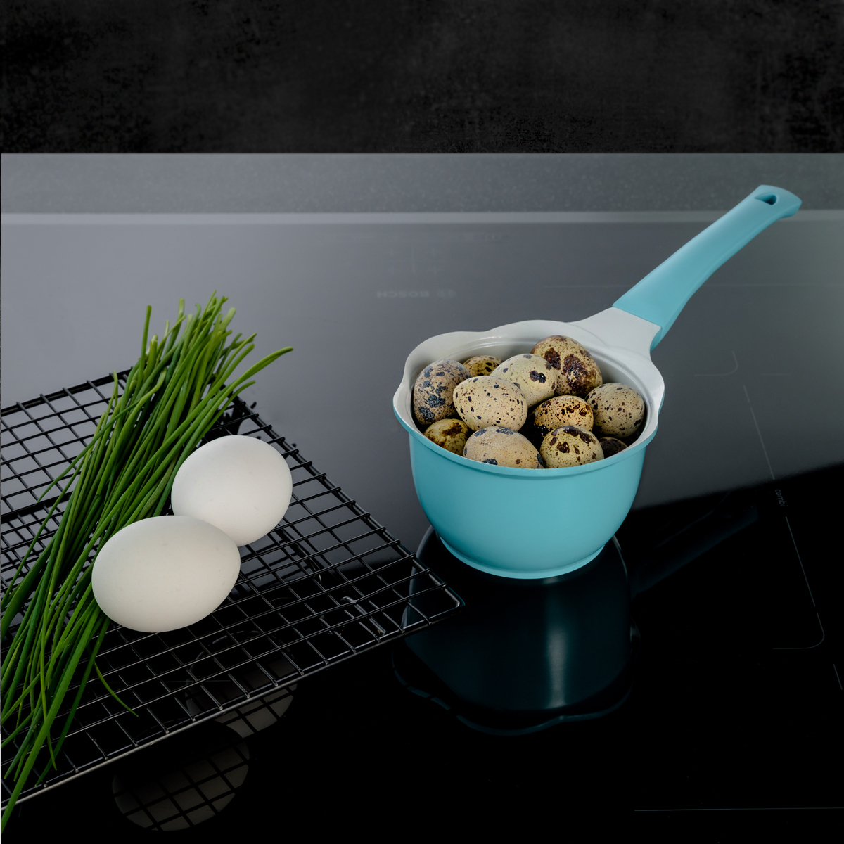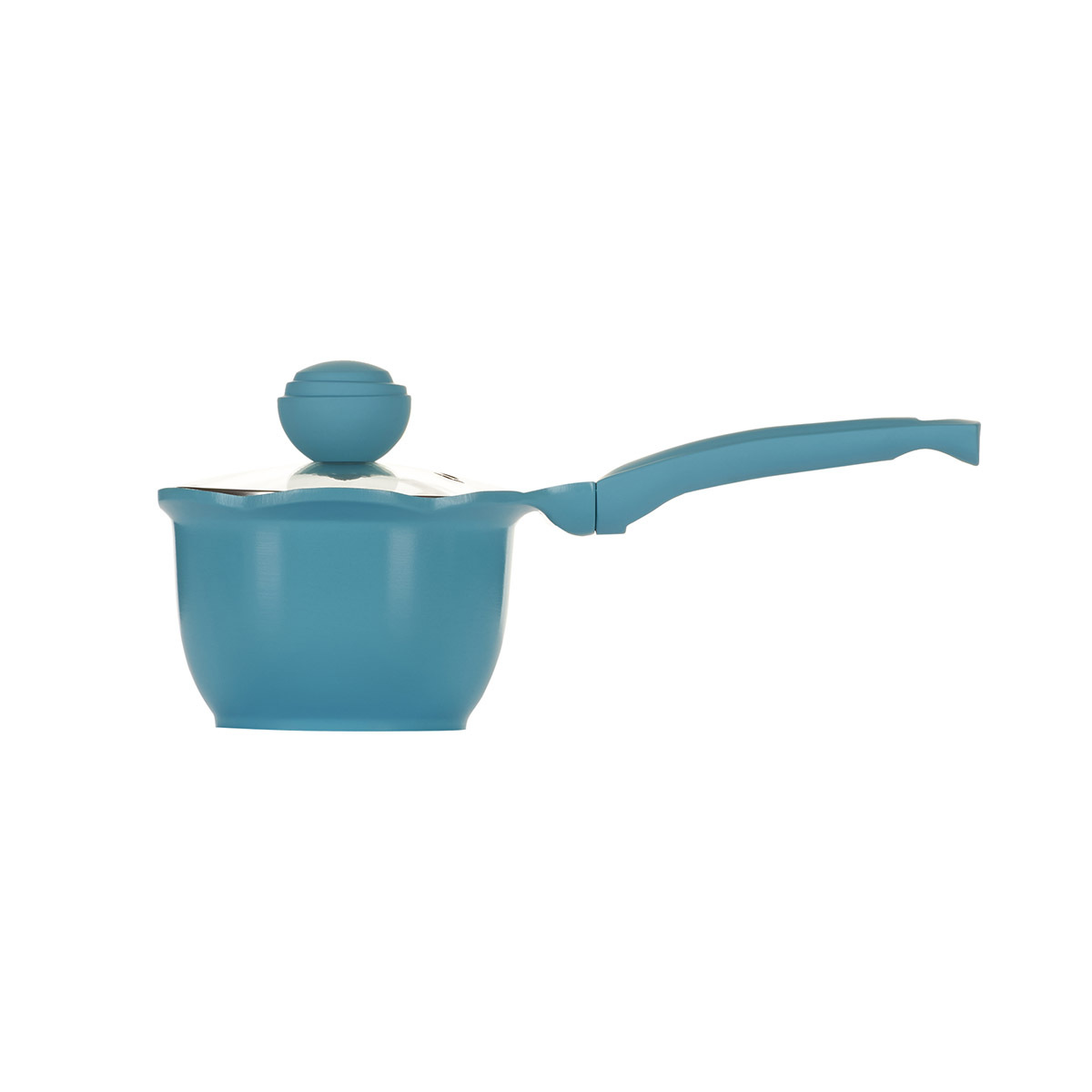 Ковш Gipfel FELICITA 0351. Размер ковша 10х7,2 см, объем 0,4 л. Сделан из литого алюминия с премиальным керамическим покрытием EXCILON. в комплекте стеклянная крышка.Ручка с покрытием Soft touch. Толщина стенок 2,5 мм.