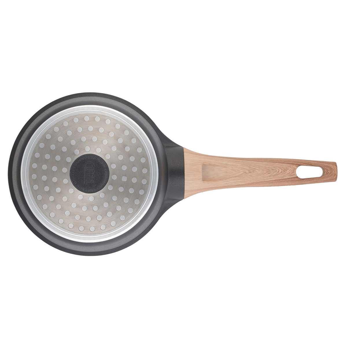 Ковш Gipfel Oliver 1,46 л. подходит для легкого и комфортного приготовления блюд. Он выполнен из литого алюминия — сертифицированного материала, прошедшего ряд экспертных испытаний. Толщина стенок и индукционное дно ковша обеспечат равномерный нагрев содержимого емкости и сохранение полезных свойств продуктов в процессе готовки. Внутренняя поверхность ковша оборудована антипригарным гранитным покрытием Pfluon, устойчивым к повреждениям и не вступающее в контакт с продуктами питания. Бакелитовая ручка для захвата обеспечит комфортный захват. Она не нагревается при готовке и не выскальзывает из рук. Стеклянная крышка устойчива к нагреванию и резким перепадам температур.