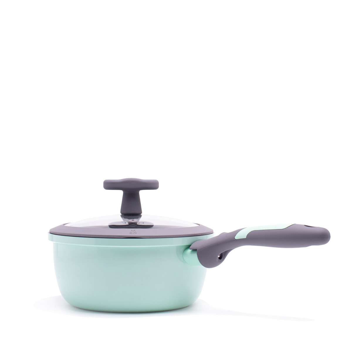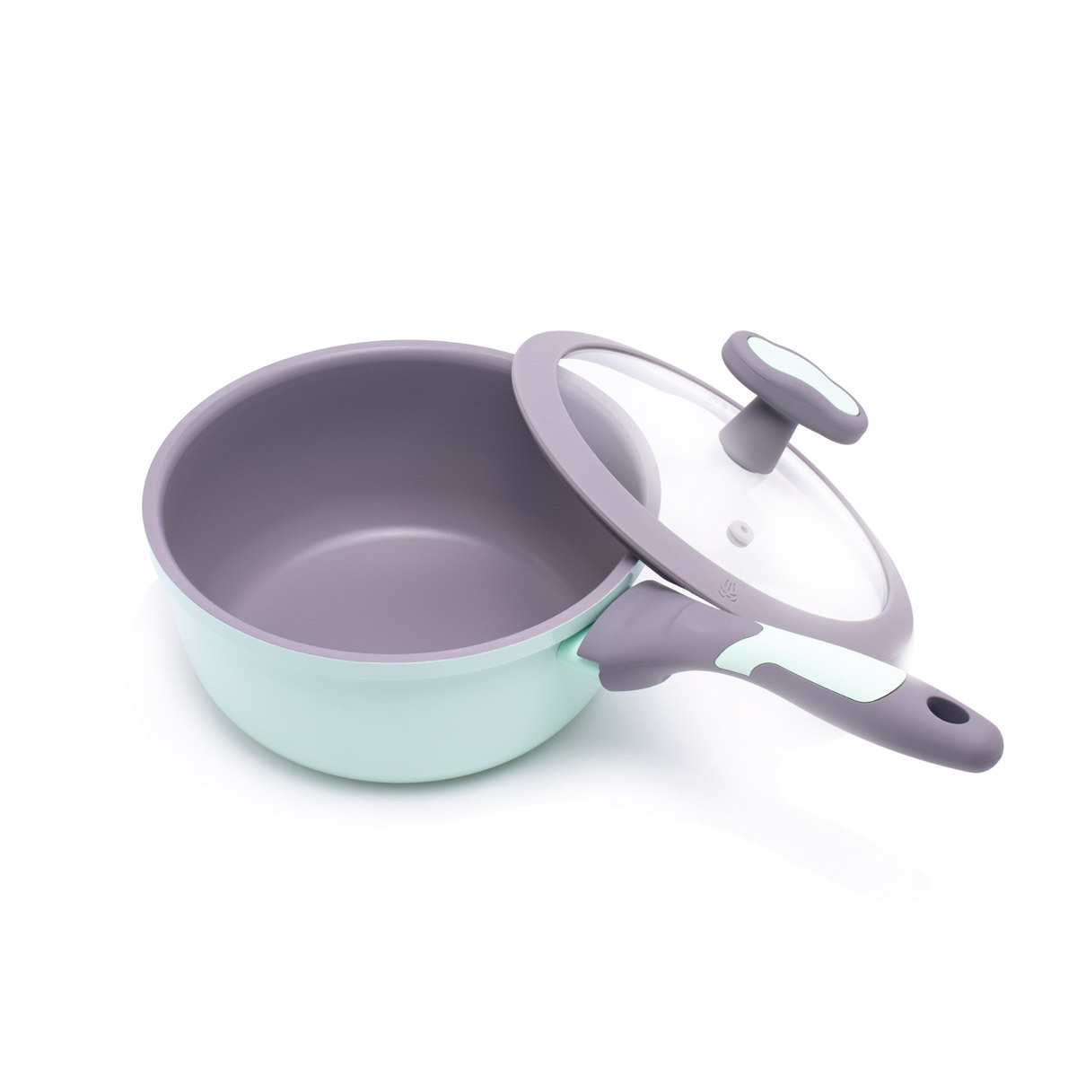Ковш алюминиевый Gipfel Stadella 0767 18 см/2 л со стеклянной крышкой, c ручкой c покрытием Soft-touch. Посуда серии STADELLA имеет оригинальную расцветку – бирюзовая наружная часть посуды органично сочетается с внутренней окраской серого цвета. Посуда изготовлена из прессованного алюминия, покрыта двухслойным антипригарным покрытием и подходит для готовки на всех типах плит, включая индукционные. Объем ковша составляет 2 литра. Диаметр дна 14 см.