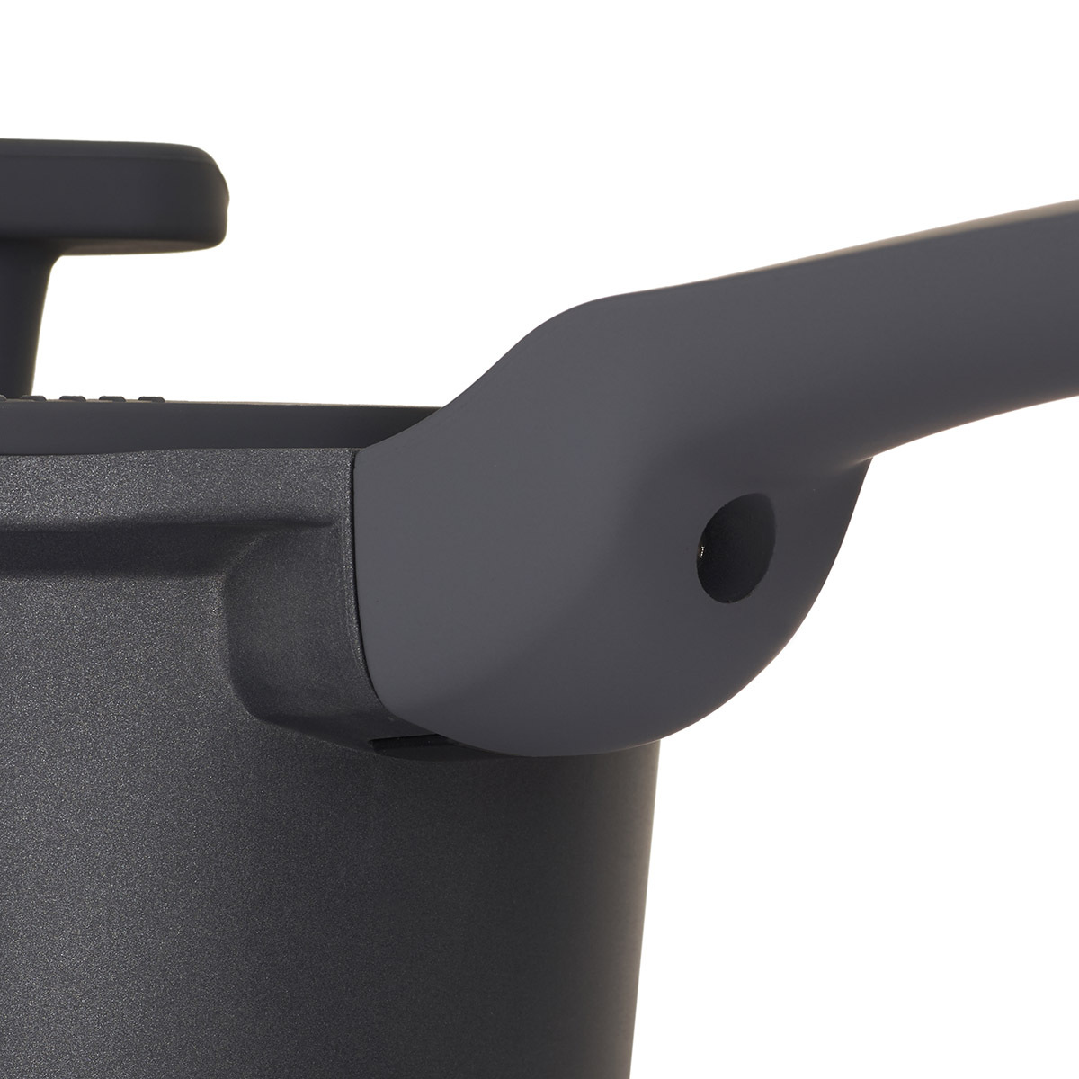 Практичный ковш — это удобная посуда для ежедневного использования на кухне. Диаметр изделия составляет 16 см, высота стенок 9,5 см, а объем — 1,5 л. Ковш оснащен стеклянной крышкой. Ручка отличается эргономичной формой, выполнена из бакелита с покрытием SoftTouch. Изделие выполнено в черном цвете из качественного литого алюминия. Материал не поддается деформации даже при контакте с высокими температурами и не выделяет вредных веществ. Индукционное дно способствует более быстрому и равномерному нагреванию пищи, а мраморное покрытие внутренних стенок и дна препятствует подгоранию продуктов.