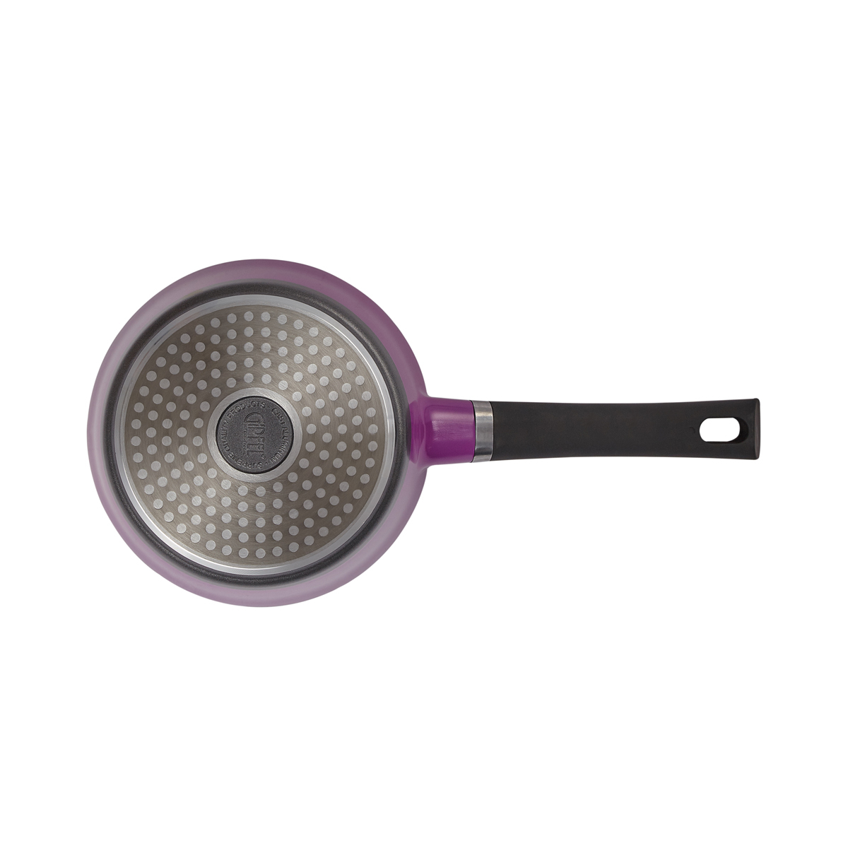 Серия посуды VIOLETA выгодно выделяется яркой фиолетовой расцветкой, которая непременно добавит яркости вашему кухонному интерьеру. Все модели серии подходят для индукционных плит и оснащены антипригарным покрытием ILAG DURIT, которое позволяет использовать кастрюли и ковши VIOLETA не только для варки, но и для тушения. Объем данного ковша составляет 1,8 литра, в комплект входит стеклянная крышка.