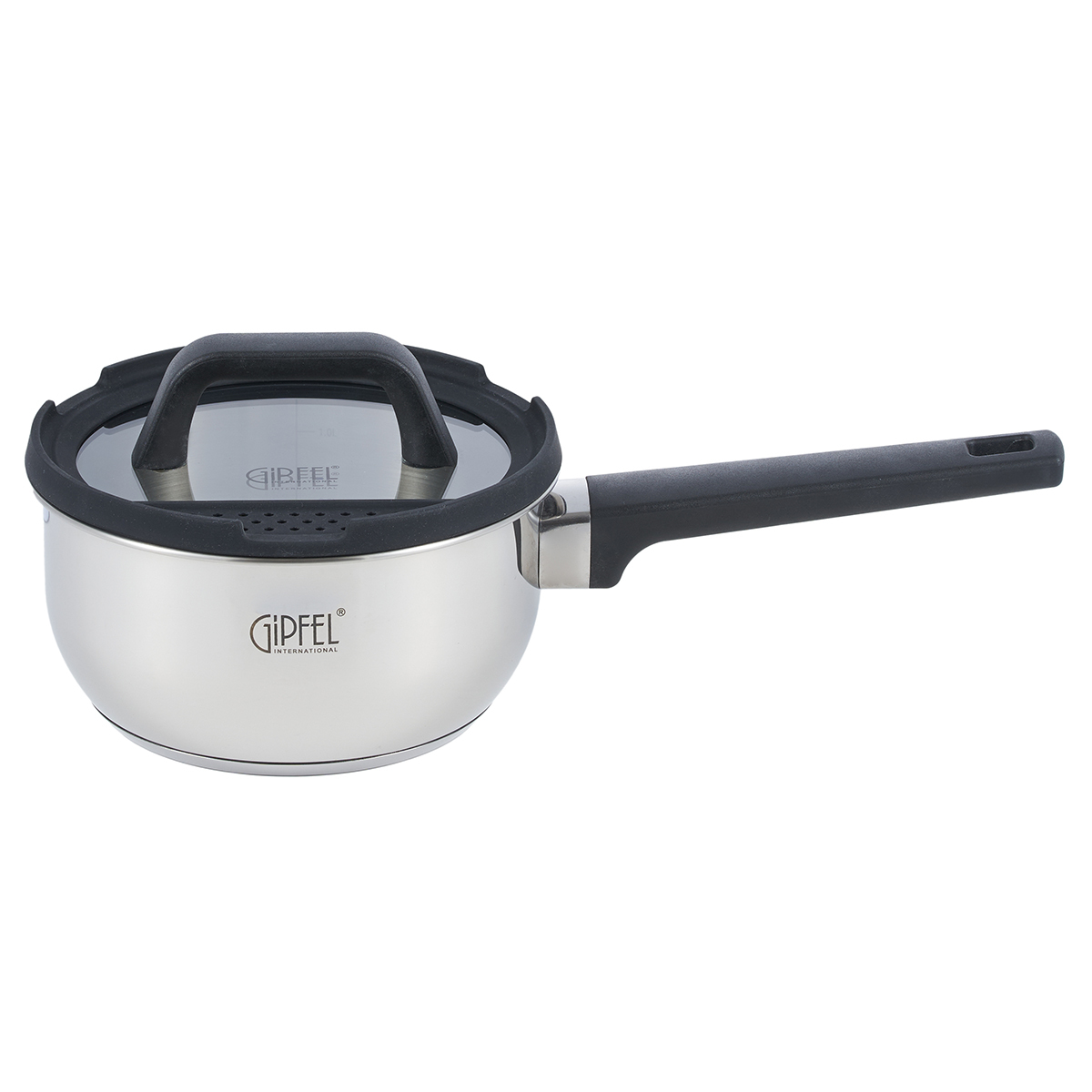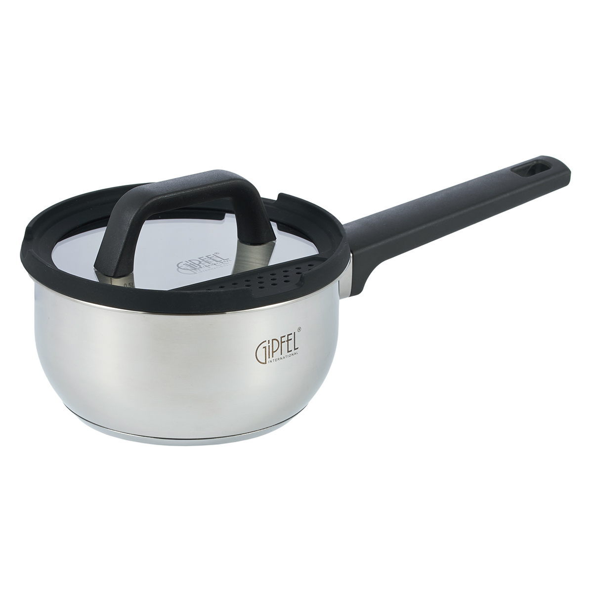 Ковш из нержавеющей стали Gipfel Bayern 52613 16 см/1,3 л. В комплекте стеклянная крышка. Толщина стенок 0,8 мм, толщина дна 5,8 мм.