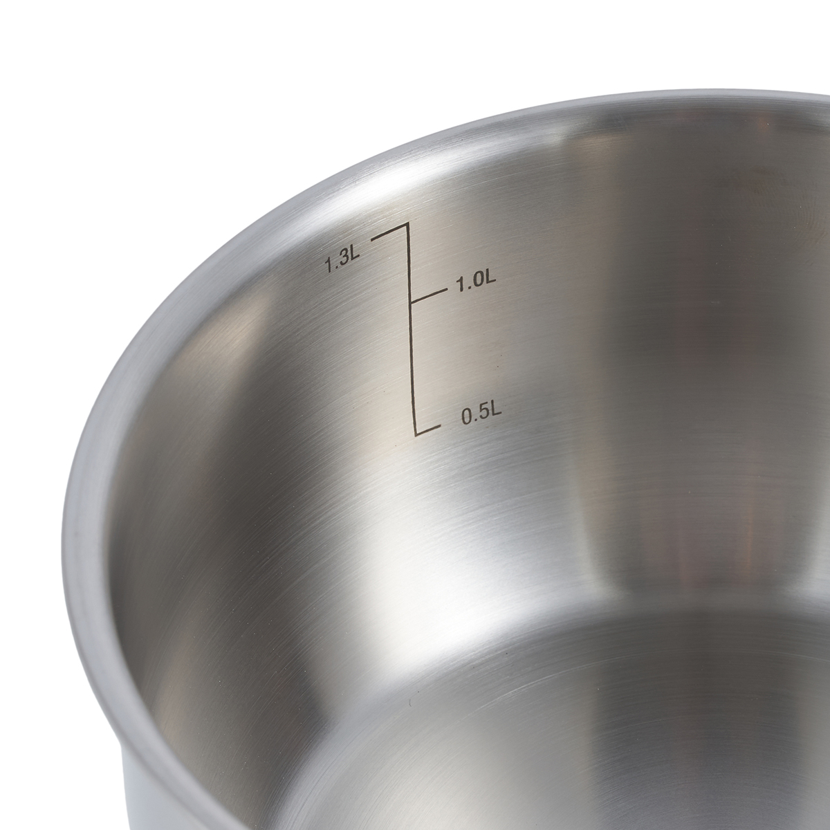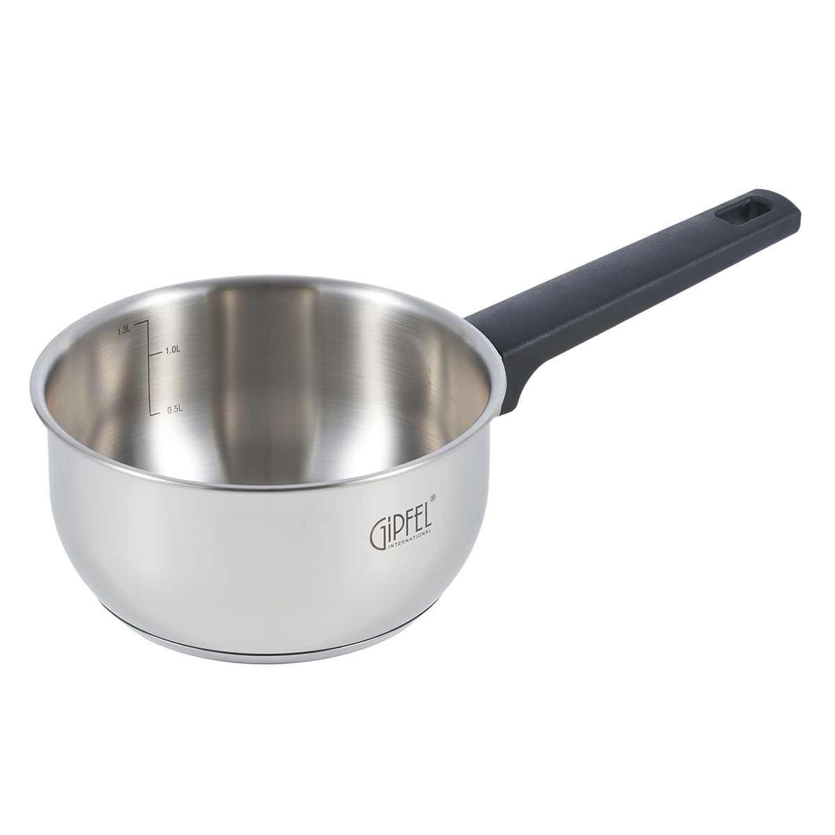 Ковш из нержавеющей стали Gipfel Bayern 52613 диаметром 16 см, объемом 1,3 л. Толщина стенок 0,8 мм, толщина дна 5,8 мм.