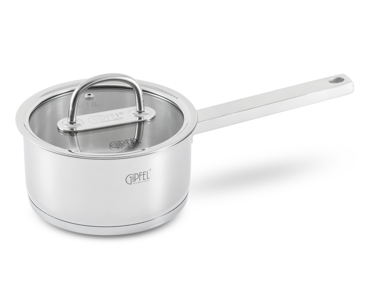 Ковш Gipfel CAPELLA 2696. Размер ковша16х8 см, объем 1,4 л. Ковш выполнен из нержавеющей стали 18/10. в классическом стиле. На ручке имеется петля для подвешивания. В комплекте крышка из закаленного стекла с широким стальным ободом и отверстием для выхода пара. Ковш оснащен индукционным диском, диаметр дна 15,5 см. Толщина стенок 0,6 мм, толщина дна 3 мм.