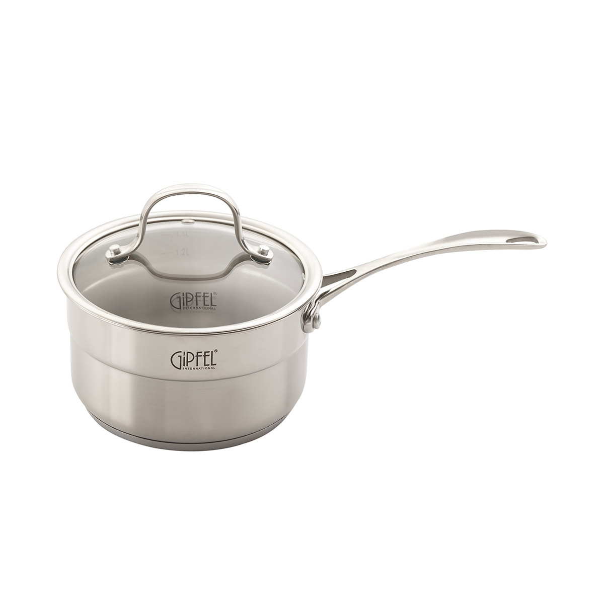 Ковш Gipfel Gala 1271. Размер ковша 16х9 см, объем 1,5 л. Ковш идет в комплекте со стеклянной крышкой. Оснащен индукционным капсульным дном. Сделан из нержавеющей стали 18/10. Толщина стенок 0,7 мм. Внутри на стенку ковша нанесена мерная шкала до 1,5 л.