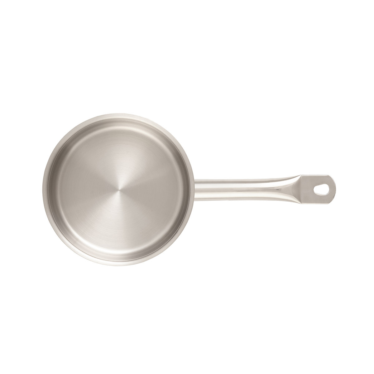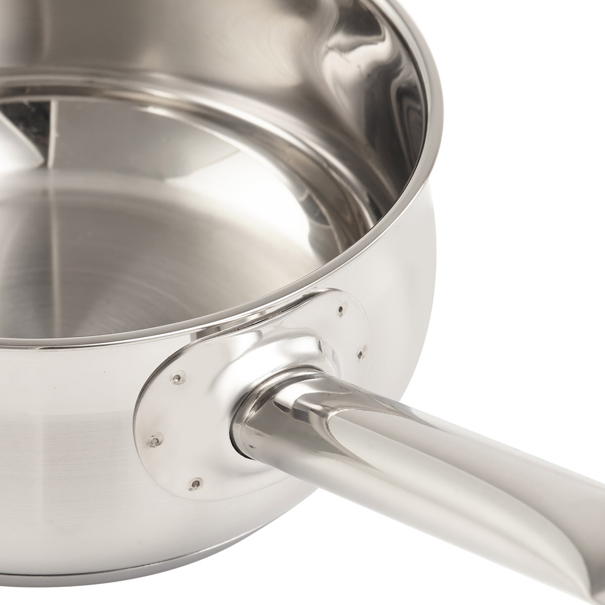 У ковша индукционное капсульное дно: при приготовлении пища нагревается равномерно и не подгорает, стенки не ломаются и не деформируются при использовании на различных видах плит.