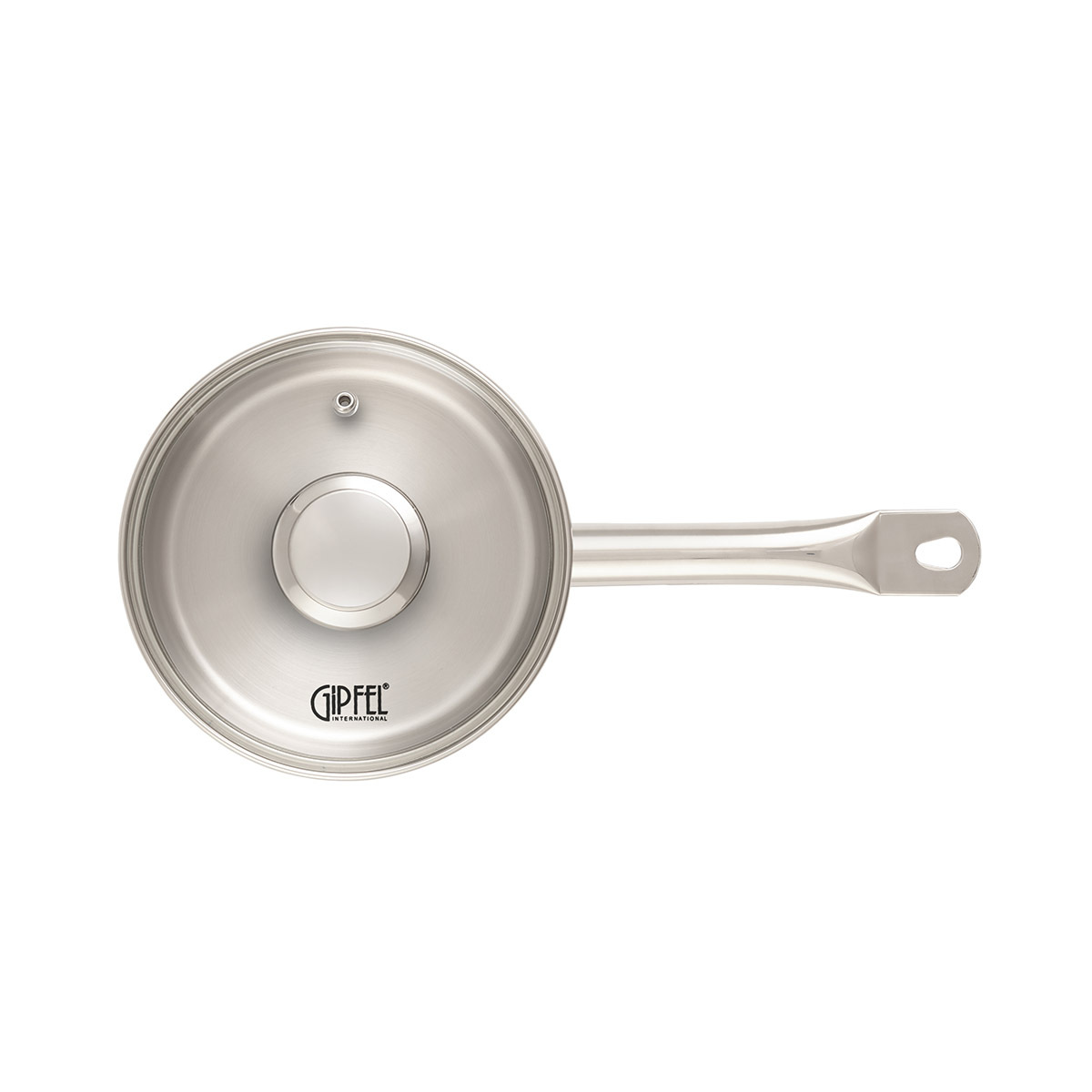 Ковш Gipfel Serenade 1741 16x7,5 см со стеклянной крышкой. Объем ковша 1,3 л. Изготовлен из нержавеющей стали 18/10. Толщина стенок 0,6 мм.