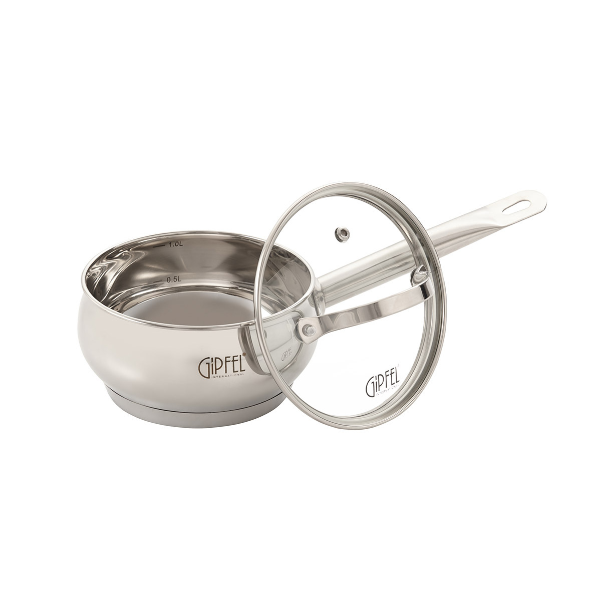 Ковш из нержавеющей стали высокого качества станет незаменимым аксессуаром в кухонном арсенале. Изделие имеет компактные размеры 14×7см, толщину дна 4,1 мм и вмещает 1л жидкости. Посуда выполнена из нержавеющей стали марки 18/10. Материал отличается повышенной прочностью, антикоррозийностью, сохраняет свою форму при взаимодействии с высокими температурами, не выделяет вредных соединений и полностью безопасен для здоровья человека. В комплекте к ковшу прилагается крышка из термостойкого стекла. Изделие можно мыть в посудомоечной машине, однако для чистки не следует применять агрессивные моющие средства и металлические скребки. Подходит для газовой, индукционной и других видов плит. Сделан из нержавеющей стали марки 18/10. Диаметр дна 11,5 см.