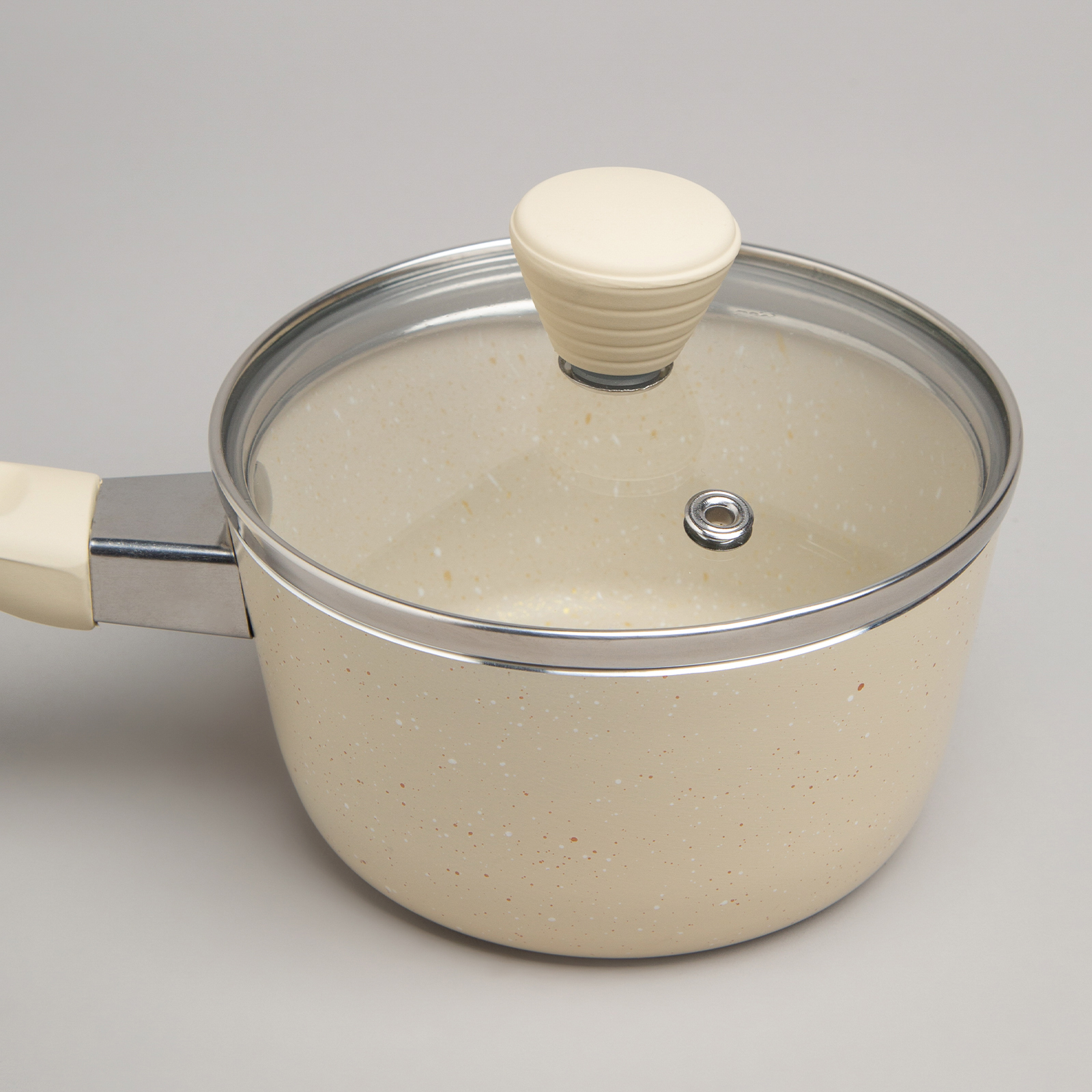 Крышка изготовлена из жаропрочного стекла, имеется пароотвод.