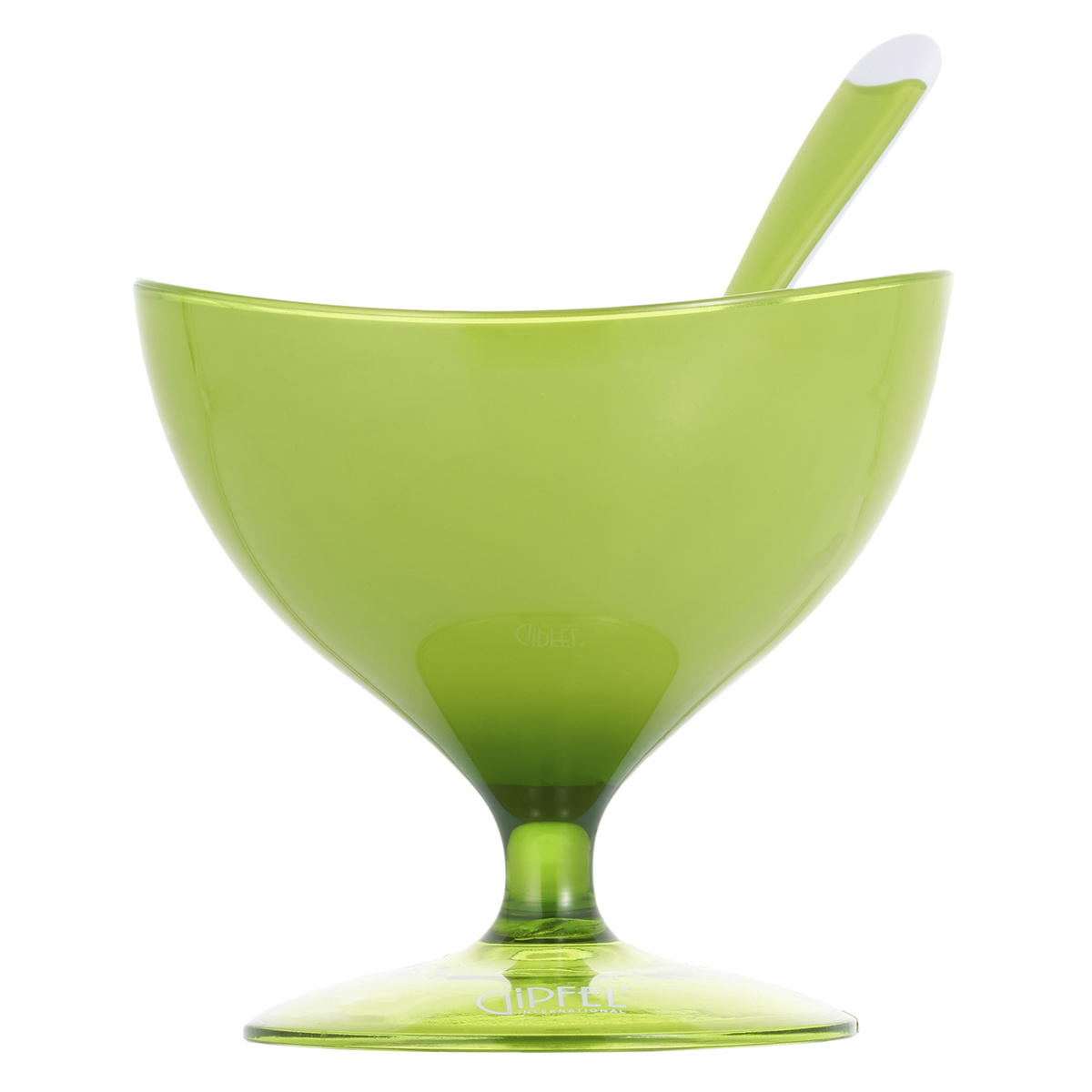 Креманка с ложкой GIPFEL LUMINO 9479. Креманка снаружи зеленого цвета, внутренняя поверхность белая. Размер креманки 10см х 10см. У креманки двойные стенки. Креманка и ложка сделаны из пластика.
