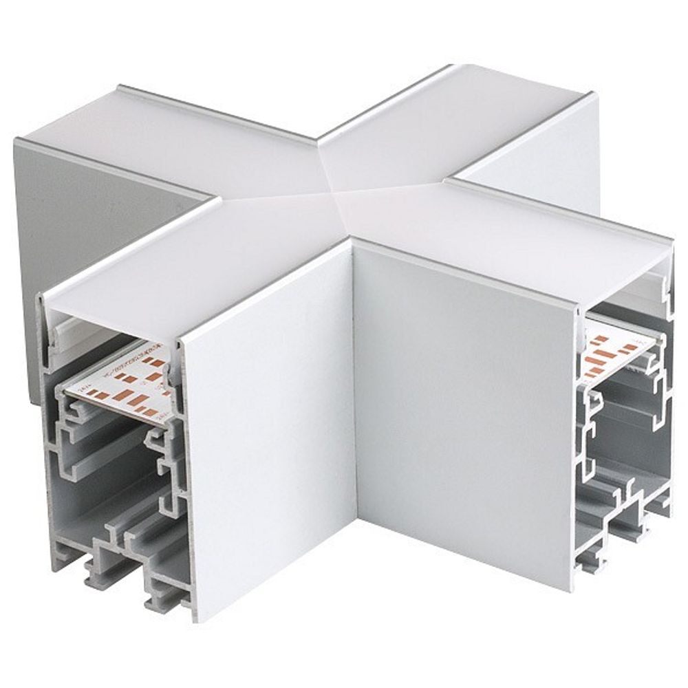 Крестовой угол в сборе, для соединения 4-х профилей S2-LINE-4067 под прямыми углами 90°. Экран образует линию 'Х' на плоскости. В комплекте матовый экран, площадка для ленты, соединители. Размеры 150х150 мм.