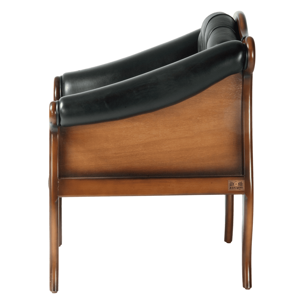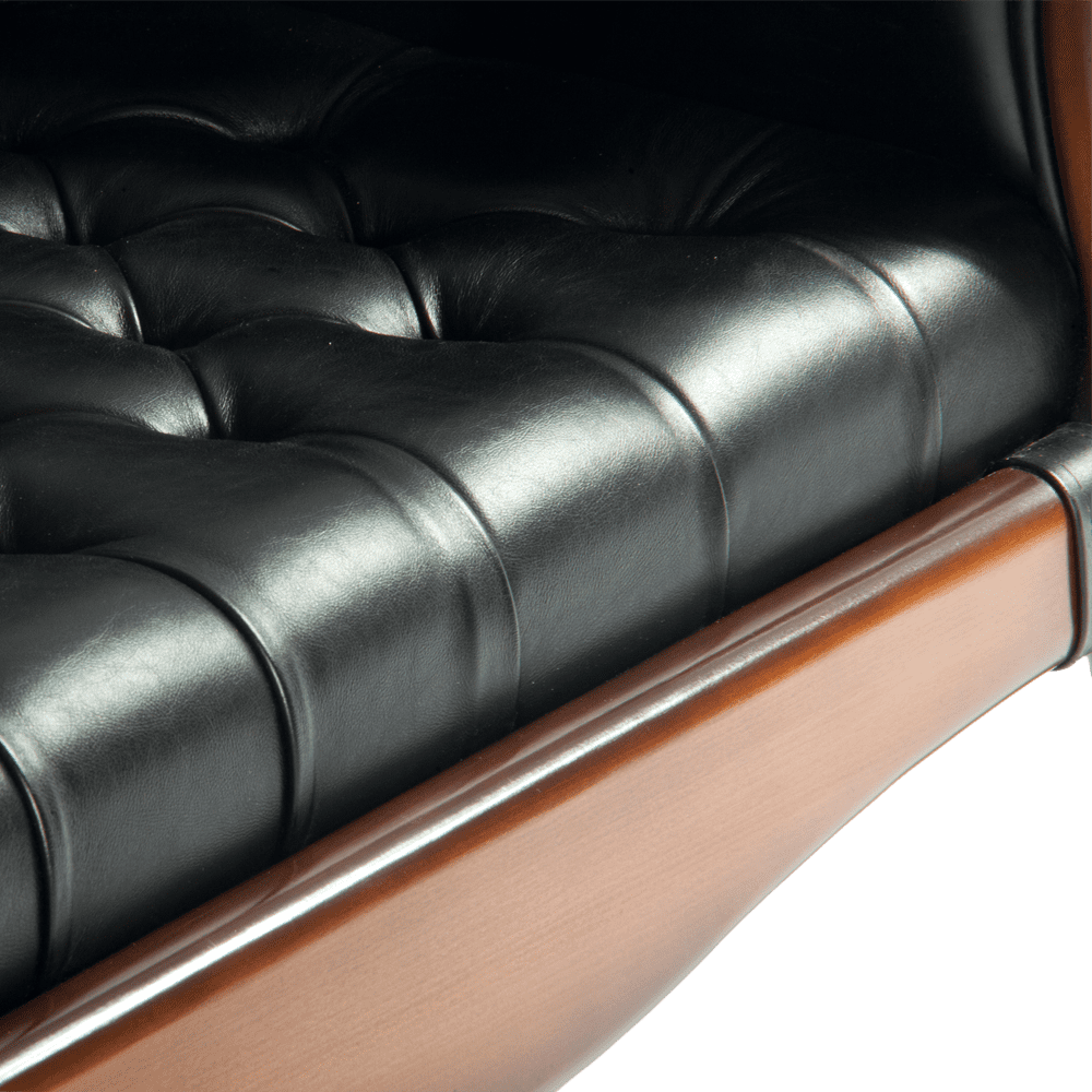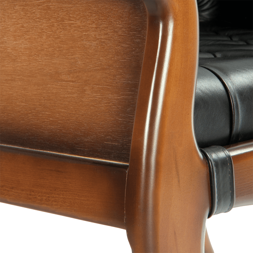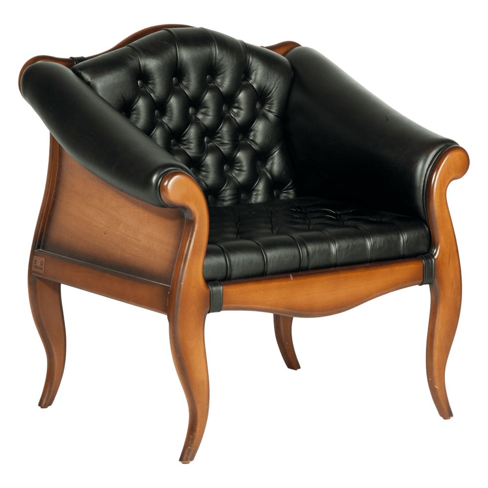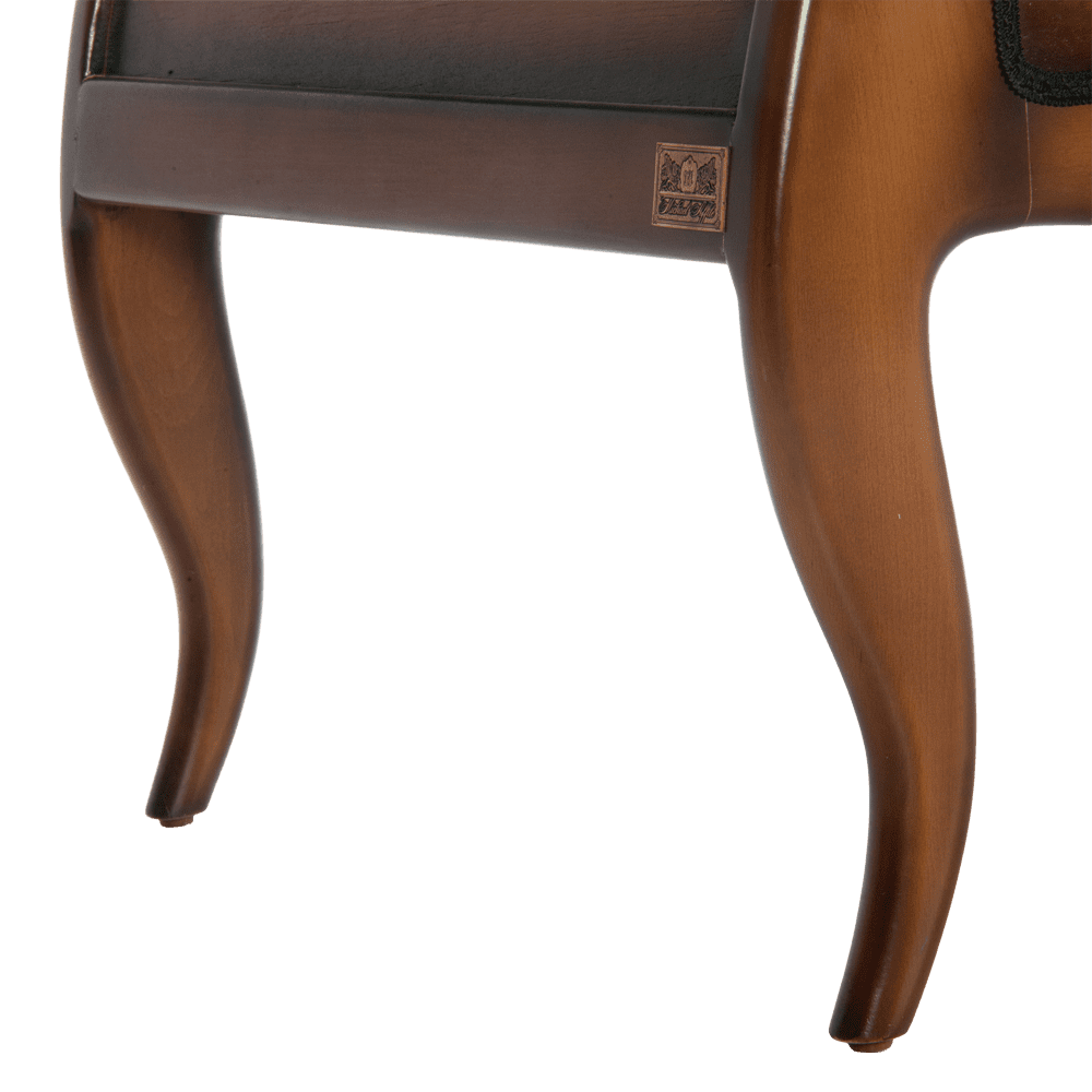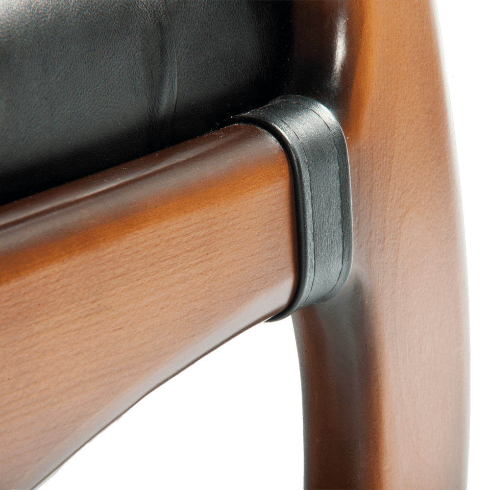 Материалы изготовления и размеры изделияКаркас – основание изготовлен из ценных пород деревьев (бук). Боковая поверхность выполнена из гибкой фанеры «фивьера» - дерево сейба. Поверхность ножек и подлокотников тонирована, патинирована и покрыта лаком. Посадочное место и спинка изготовлены из натурального дерева – бук, в качестве наполнителя используется – ППУ (пенополиуретан), материал для обивки: натуральная кожа или искусственная кожа. ВЫСОТА ОТ ПОЛА ДО СИДЕНЬЯ: 47 см.
