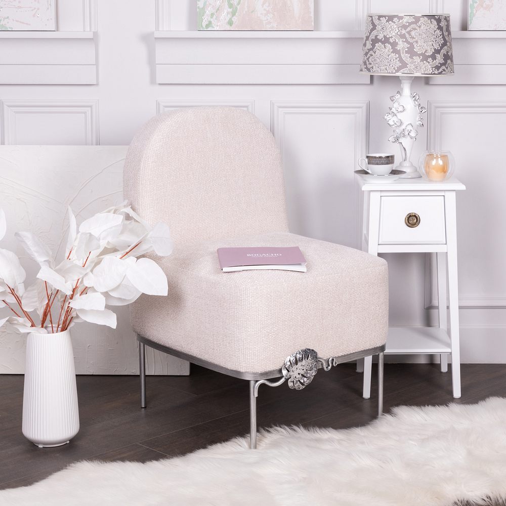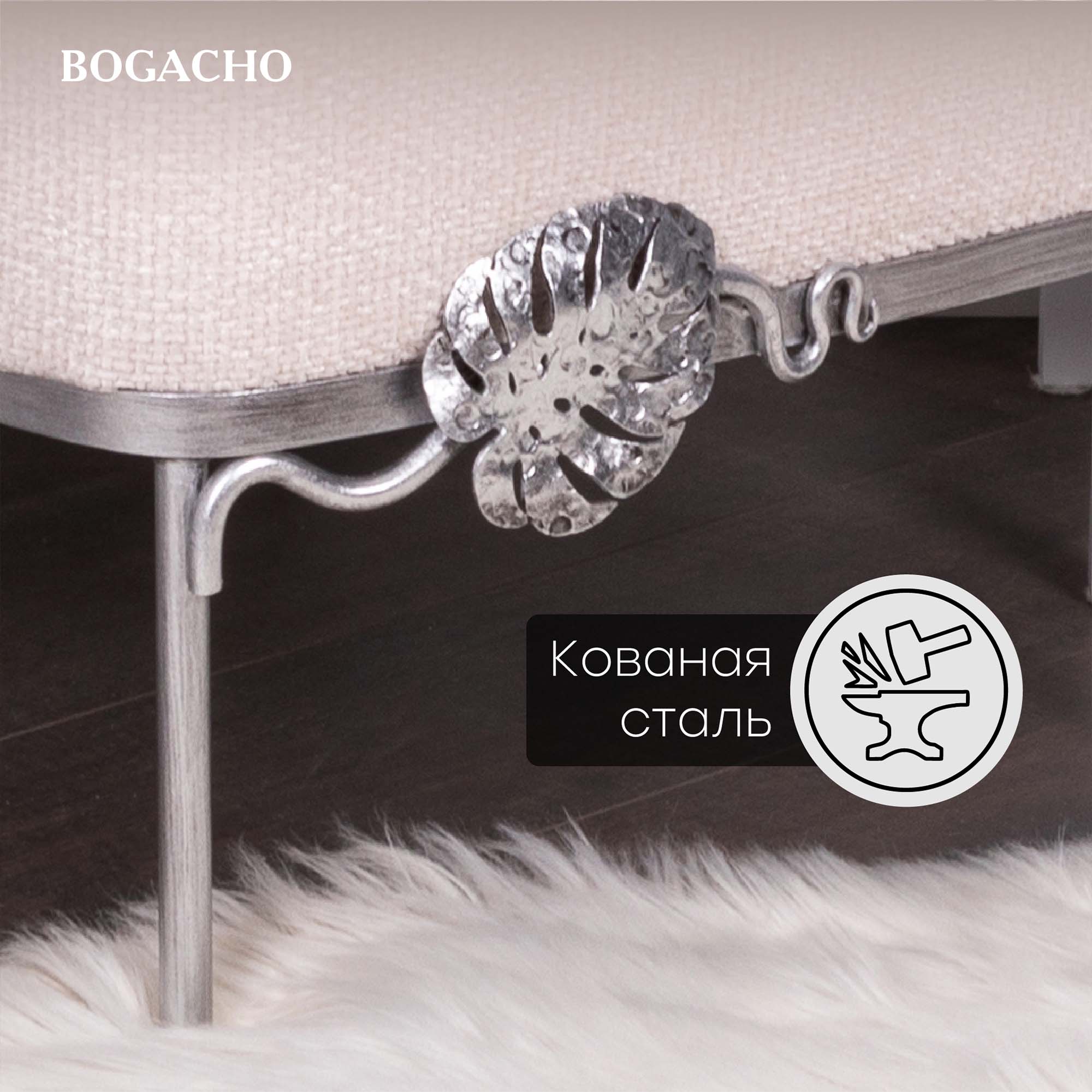 Кресло – от российской фабрики мебели BOGACHO, эффектный предмет интерьера, который позволит создать в вашем доме изысканную обстановку. Кресло для отдыха– важный элемент мебели, без которого не обходится ни один дом или квартира. Кресло можно разместить в любой комнате дома, они гармонично будут смотреться в классическом интерьере, лофт, скандинавский стиль. Мы тщательно работали над внешним видом кресла, чтобы передать эстетику роскошных, уютных и практичных английских домов.Кресло с кованым листом Монстеры – великолепное произведение искусства, соединение кропотливого труда искусных мастеров и уточнённой фантазии дизайнера. Уютное интерьерное кресло на ножках прекрасно впишется в любой современный домашний или офисный интерьер. Мебель от фабрики BOGACHO разнообразит дизайн дома в гостиной, спальне, детской комнате, может стать отличным элементом декора в рабочем кабинете руководителя в офисе, в кафе или баре, в гостинице. Мебель для квартиры нашего бренда можно поставить в прихожую, в спальню или лоджию. Наша мебель создана для дома, для квартиры, для дачи, для гостиницы, в отель, салон красоты, ресторан. Кресло без подлокотников, выполнено в стиле своременной классики. Изделие отличается прочной устойчивой конструкцией и прослужит не один год! Каркас – основание изготовлен из кованой стали.Поверхность патинированамастерами фабрии вручную. В качестве наполнителя используется – ППУ (пенополиуретан), материал для обивки: износоустойчивый шенилл. Любите, чтобы интерьер был в едином стиле? Присмотритесь к другой мебели фабрики BOGACHO, которая будет гармонично сочетаться друг с другом. В нашем каталоге есть готовые интерьерные решения с диванами и креслами.