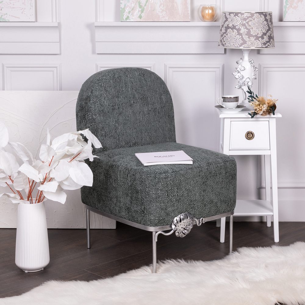 Кресло – от российской фабрики мебели BOGACHO, эффектный предмет интерьера, который позволит создать в вашем доме изысканную обстановку. Кресло для отдыха– важный элемент мебели, без которого не обходится ни один дом или квартира. Кресло можно разместить в любой комнате дома, они гармонично будут смотреться в классическом интерьере, лофт, скандинавский стиль. Мы тщательно работали над внешним видом кресла, чтобы передать эстетику роскошных, уютных и практичных английских домов.Кресло с кованым листом Монстеры – великолепное произведение искусства, соединение кропотливого труда искусных мастеров и уточнённой фантазии дизайнера. Уютное интерьерное кресло на ножках прекрасно впишется в любой современный домашний или офисный интерьер. Мебель от фабрики BOGACHO разнообразит дизайн дома в гостиной, спальне, детской комнате, может стать отличным элементом декора в рабочем кабинете руководителя в офисе, в кафе или баре, в гостинице. Мебель для квартиры нашего бренда можно поставить в прихожую, в спальню или лоджию. Наша мебель создана для дома, для квартиры, для дачи, для гостиницы, в отель, салон красоты, ресторан. Кресло без подлокотников, выполнено в стиле своременной классики. Изделие отличается прочной устойчивой конструкцией и прослужит не один год! Каркас – основание изготовлен из кованой стали.Поверхность патинированамастерами фабрии вручную. В качестве наполнителя используется – ППУ (пенополиуретан), материал для обивки: износоустойчивый шенилл. Любите, чтобы интерьер был в едином стиле? Присмотритесь к другой мебели фабрики BOGACHO, которая будет гармонично сочетаться друг с другом. В нашем каталоге есть готовые интерьерные решения с диванами и креслами.