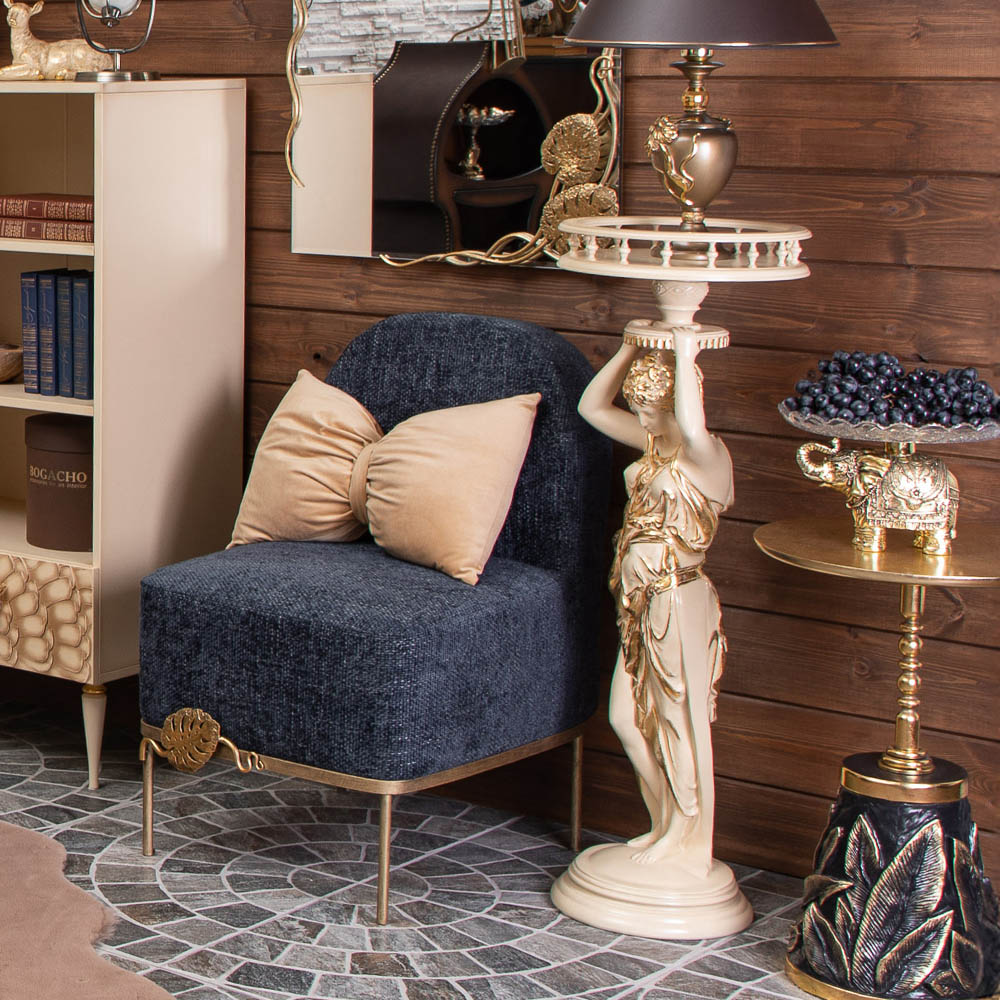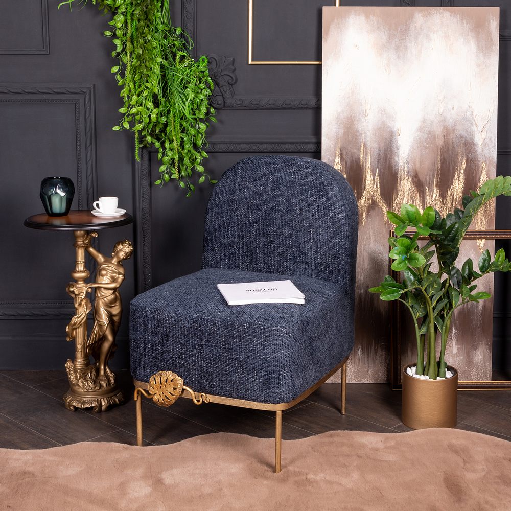 Кресло – от российской фабрики мебели BOGACHO, эффектный предмет интерьера, который позволит создать в вашем доме изысканную обстановку. Кресло для отдыха– важный элемент мебели, без которого не обходится ни один дом или квартира. Кресло можно разместить в любой комнате дома, они гармонично будут смотреться в классическом интерьере, лофт, скандинавский стиль. Мы тщательно работали над внешним видом кресла, чтобы передать эстетику роскошных, уютных и практичных английских домов.Кресло с кованым листом Монстеры – великолепное произведение искусства, соединение кропотливого труда искусных мастеров и уточнённой фантазии дизайнера. Уютное интерьерное кресло на ножках прекрасно впишется в любой современный домашний или офисный интерьер. Мебель от фабрики BOGACHO разнообразит дизайн дома в гостиной, спальне, детской комнате, может стать отличным элементом декора в рабочем кабинете руководителя в офисе, в кафе или баре, в гостинице. Мебель для квартиры нашего бренда можно поставить в прихожую, в спальню или лоджию. Наша мебель создана для дома, для квартиры, для дачи, для гостиницы, в отель, салон красоты, ресторан. Кресло без подлокотников, выполнено в стиле своременной классики. Изделие отличается прочной устойчивой конструкцией и прослужит не один год! Каркас – основание изготовлен из кованой стали.Поверхность патинированамастерами фабрии вручную. В качестве наполнителя используется – ППУ (пенополиуретан), материал для обивки: износоустойчивый шенилл. Любите, чтобы интерьер был в едином стиле? Присмотритесь к другой мебели фабрики BOGACHO, которая будет гармонично сочетаться друг с другом. В нашем каталоге есть готовые интерьерные решения с диванами и креслами.