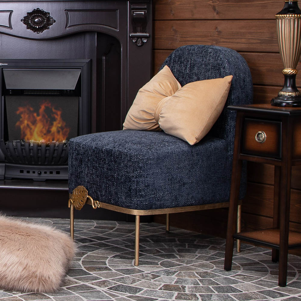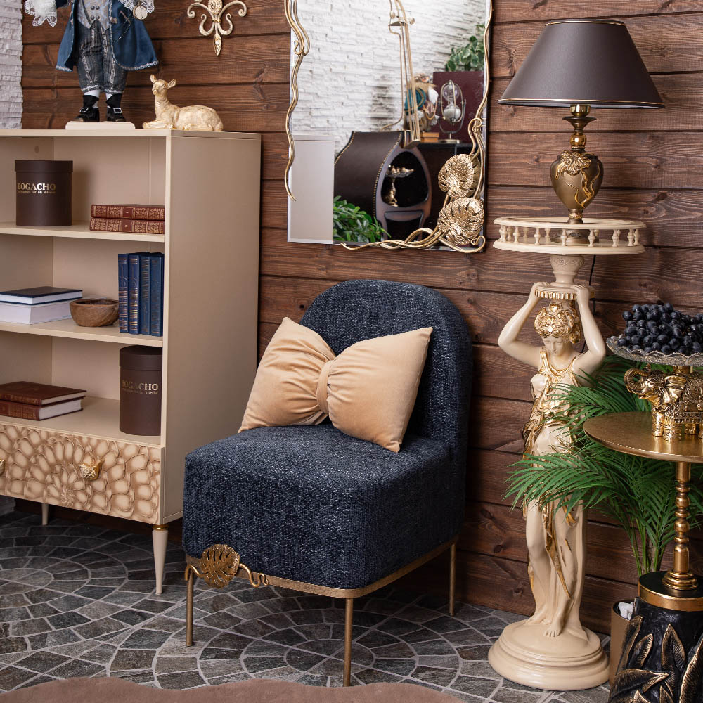 Кресло – от российской фабрики мебели BOGACHO, эффектный предмет интерьера, который позволит создать в вашем доме изысканную обстановку. Кресло для отдыха– важный элемент мебели, без которого не обходится ни один дом или квартира. Кресло можно разместить в любой комнате дома, они гармонично будут смотреться в классическом интерьере, лофт, скандинавский стиль. Мы тщательно работали над внешним видом кресла, чтобы передать эстетику роскошных, уютных и практичных английских домов.Кресло с кованым листом Монстеры – великолепное произведение искусства, соединение кропотливого труда искусных мастеров и уточнённой фантазии дизайнера. Уютное интерьерное кресло на ножках прекрасно впишется в любой современный домашний или офисный интерьер. Мебель от фабрики BOGACHO разнообразит дизайн дома в гостиной, спальне, детской комнате, может стать отличным элементом декора в рабочем кабинете руководителя в офисе, в кафе или баре, в гостинице. Мебель для квартиры нашего бренда можно поставить в прихожую, в спальню или лоджию. Наша мебель создана для дома, для квартиры, для дачи, для гостиницы, в отель, салон красоты, ресторан. Кресло без подлокотников, выполнено в стиле своременной классики. Изделие отличается прочной устойчивой конструкцией и прослужит не один год! Каркас – основание изготовлен из кованой стали.Поверхность патинированамастерами фабрии вручную. В качестве наполнителя используется – ППУ (пенополиуретан), материал для обивки: износоустойчивый шенилл. Любите, чтобы интерьер был в едином стиле? Присмотритесь к другой мебели фабрики BOGACHO, которая будет гармонично сочетаться друг с другом. В нашем каталоге есть готовые интерьерные решения с диванами и креслами.