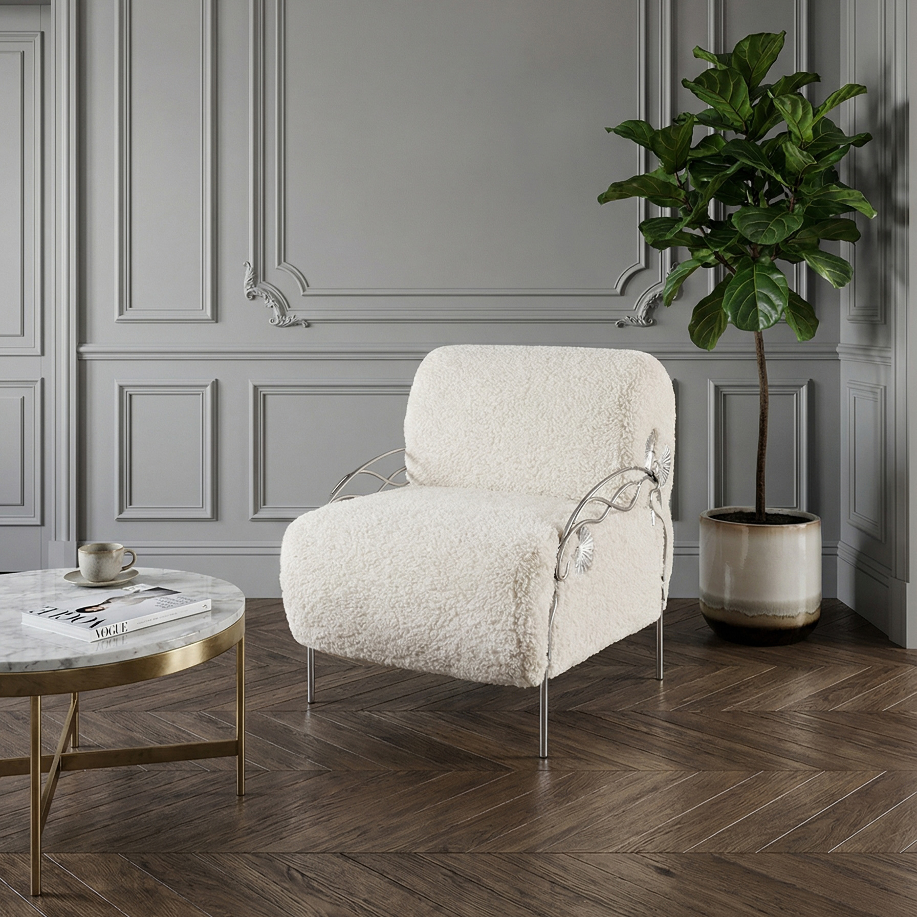 Кресло «Нимфея» – изысканная деталь интерьера для тех, кто ценит комфорт и роскошь.Модель выполнена из прочной кованой стали и отделана мягкой мебельной тканью с добавлением искусственного меха. Такое сочетание делает кресло не только декоративным акцентом, но и по-настоящему уютным местом для отдыха. Элегантная цветовая палитра в тоне какао и благородное серебристое патинирование подчёркивают уникальную ручную работу мастеров. «Нимфея» гармонично вписывается в классические и современные интерьеры, дополняя гостиную, спальню или зону отдыха выразительным премиум-акцентом. Преимущества модели: Прочная база из кованой стали — долговечность и устойчивость Мягкая мебельная ткань с искусственным мехом — максимальный комфорт Авторская отделка в стиле — подчеркнутая премиальность Универсальный дизайн, подходящий для интерьеров класса люкс Кресло Нимфея — идеальное решение для создания атмосферы уюта и эксклюзивности в вашем доме.
