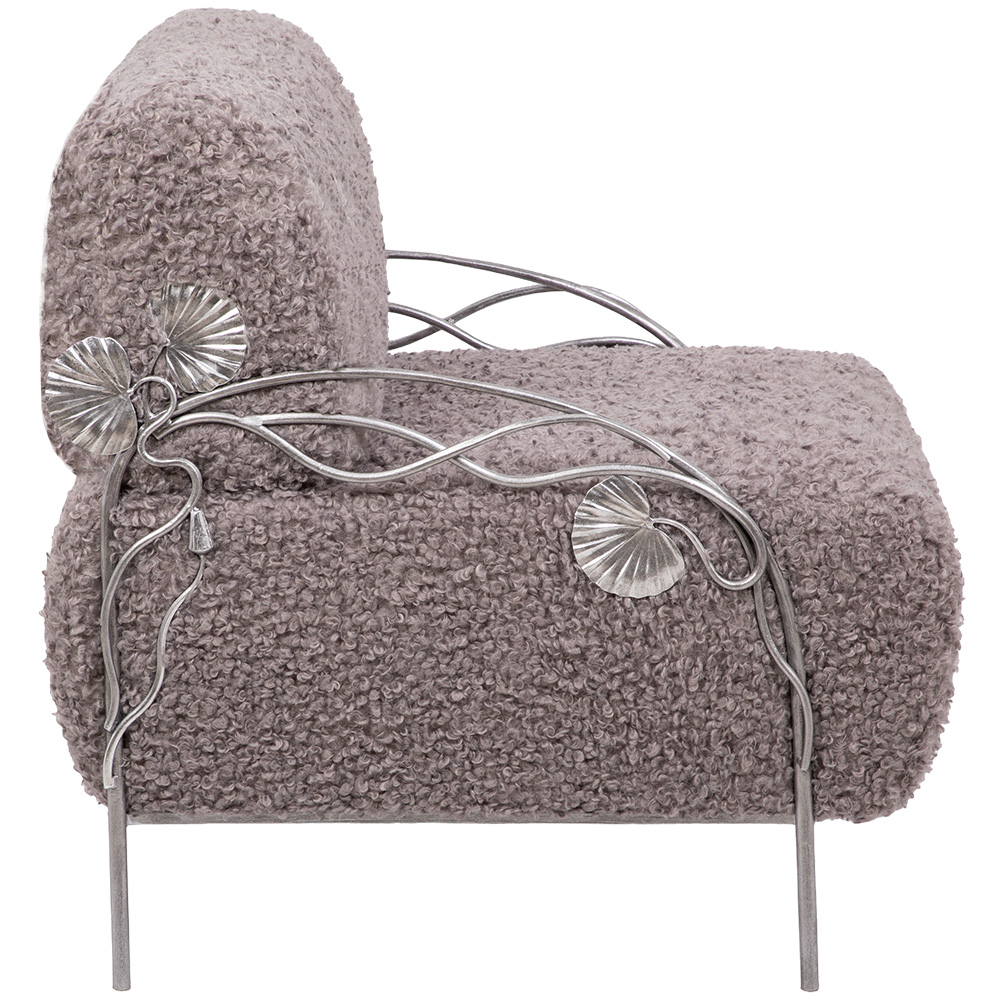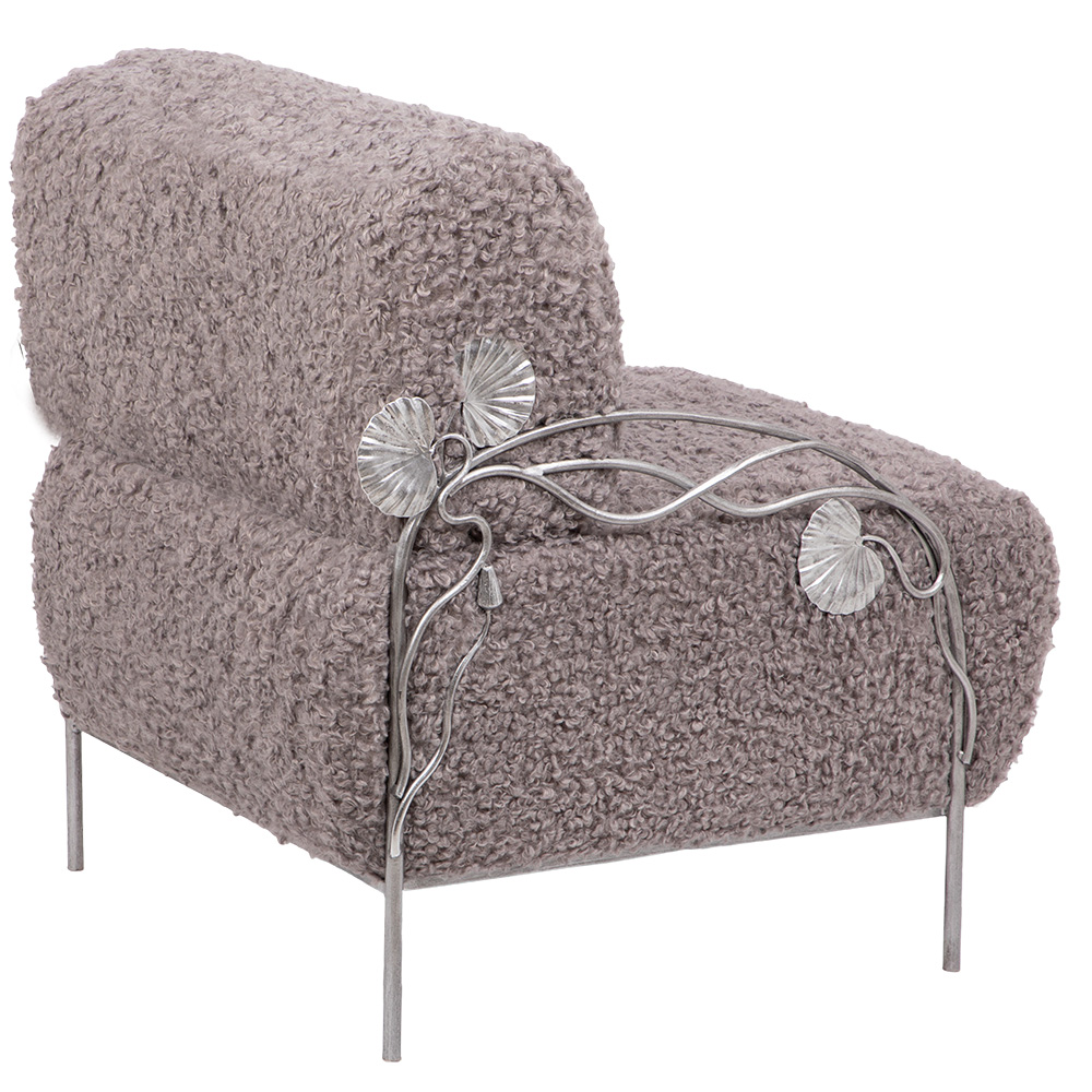 Кресло «Нимфея» – изысканная деталь интерьера для тех, кто ценит комфорт и роскошь.Модель выполнена из прочной кованой стали и отделана мягкой мебельной тканью с добавлением искусственного меха. Такое сочетание делает кресло не только декоративным акцентом, но и по-настоящему уютным местом для отдыха. Элегантная цветовая палитра в тоне какао и благородное серебристое патинирование подчёркивают уникальную ручную работу мастеров. «Нимфея» гармонично вписывается в классические и современные интерьеры, дополняя гостиную, спальню или зону отдыха выразительным премиум-акцентом. Преимущества модели: Прочная база из кованой стали — долговечность и устойчивость Мягкая мебельная ткань с искусственным мехом — максимальный комфорт Авторская отделка в стиле — подчеркнутая премиальность Универсальный дизайн, подходящий для интерьеров класса люкс Кресло Нимфея — идеальное решение для создания атмосферы уюта и эксклюзивности в вашем доме.