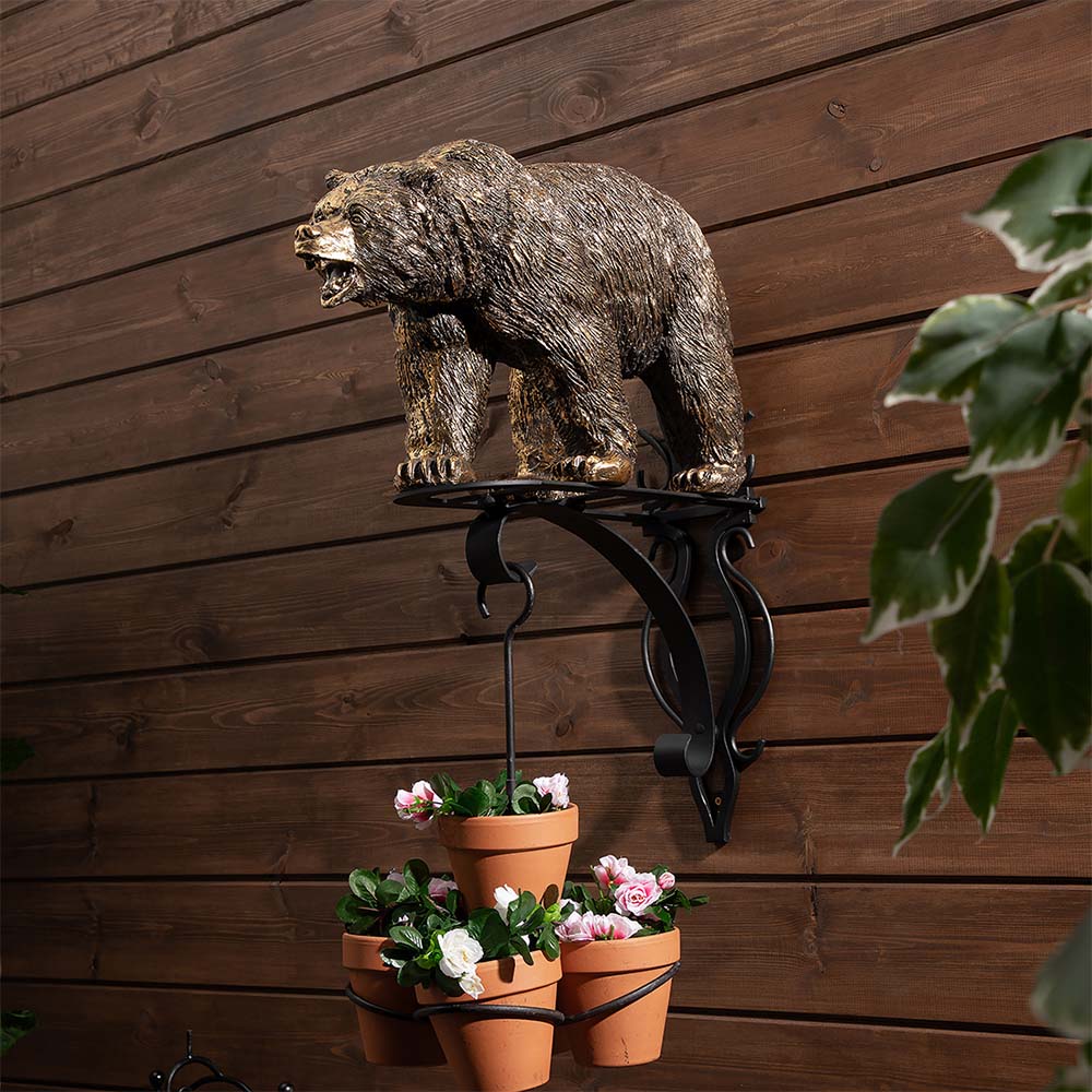 Игра контрастовГрозный медведь и прекрасные цветы – сочетание силы и красоты, мужского начала и женской утонченности. Игра контрастов, смыслов и образов. Великолепная возможность с выдумкой оформить жилое пространство частного дома, дачи, балкона. Этот стильный, необычный аксессуар можно также использовать в саду, во дворе, на дачном участке.