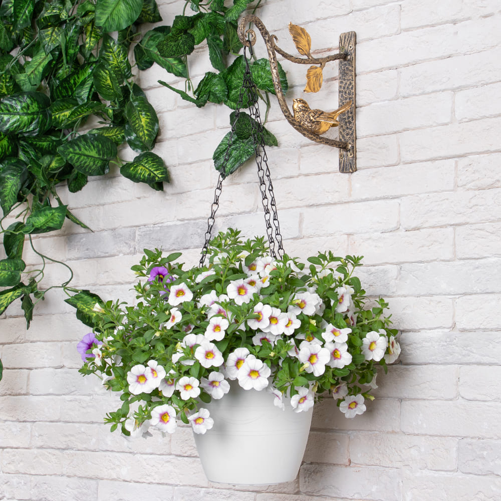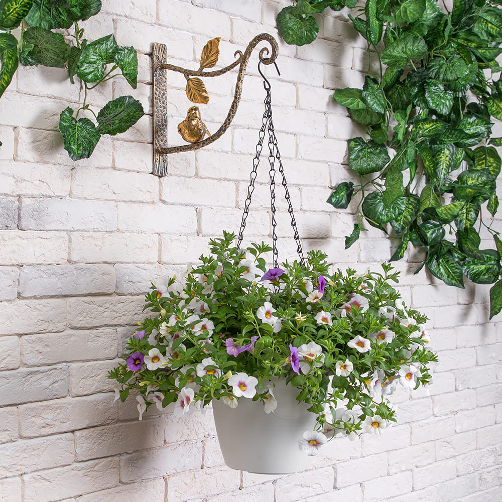 Подвес для цветов «Птичка Терра Ливз» - изящный и функциональный аксессуар для частного дома, балкона, террасы или беседки. Держатель предназначен для цветов в кашпо или фонаря, но проявив фантазию, разместить на кронштейне можно любой подвесной декор.