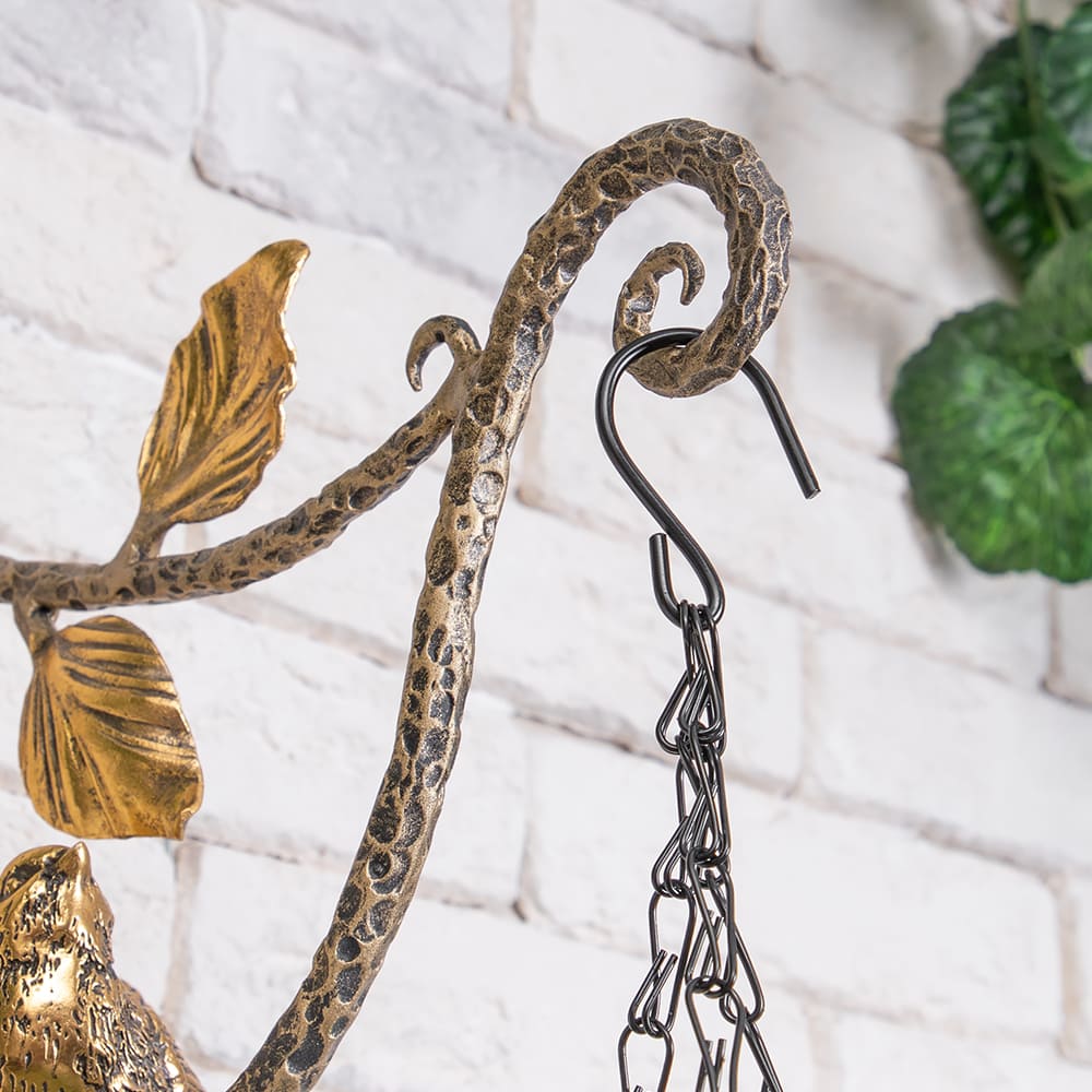 Яркий акцент вашего сада! Кованый декоративный держатель создан вручную кузнецами фабрики BOGACHO, а фирменная птичка отлита из коелгинского мрамора. Такая подвесная подставка для растений – это настоящее произведение искусства, которое смотрится богато и изысканно.