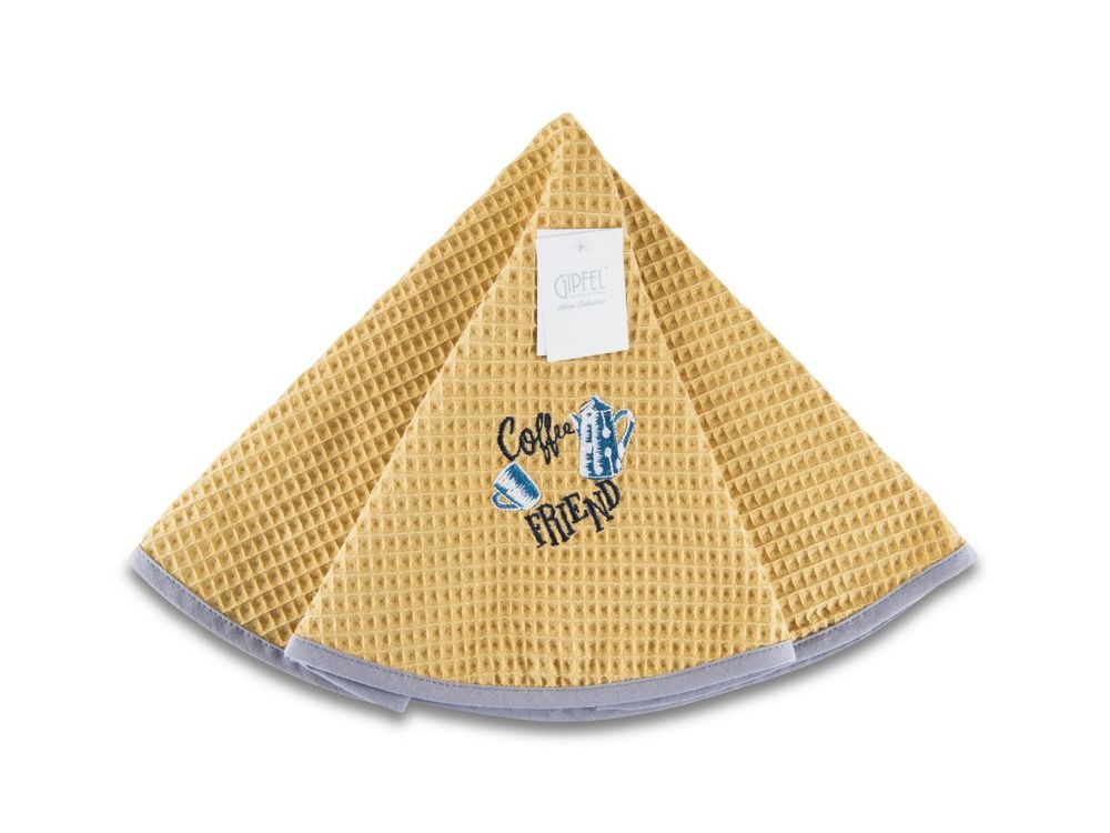 Полотенце кухонное круглое GIPFEL MONA 40932. Размер 65х65см. Кухонное полотенце желтого цвета с рисунком кофейника и кружки сделано из 100% хлопка. Состав: 100% хлопок, плотность нити 260гр/м2. Полотенце из натурального материала отлично впитывает влагу, не оставляет разводов и ворсинок на поверхности.