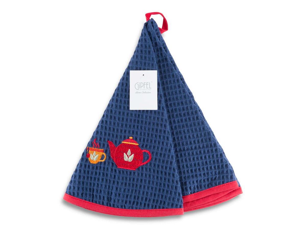 Полотенце кухонное круглое GIPFEL MONA 40934. Размер 65х65см. Кухонное полотенце синего цвета с рисунком чайника и кружки сделано из 100% хлопка. Состав: 100% хлопок, плотность нити 260гр/м2. Полотенце из натурального материала отлично впитывает влагу, не оставляет разводов и ворсинок на поверхности.