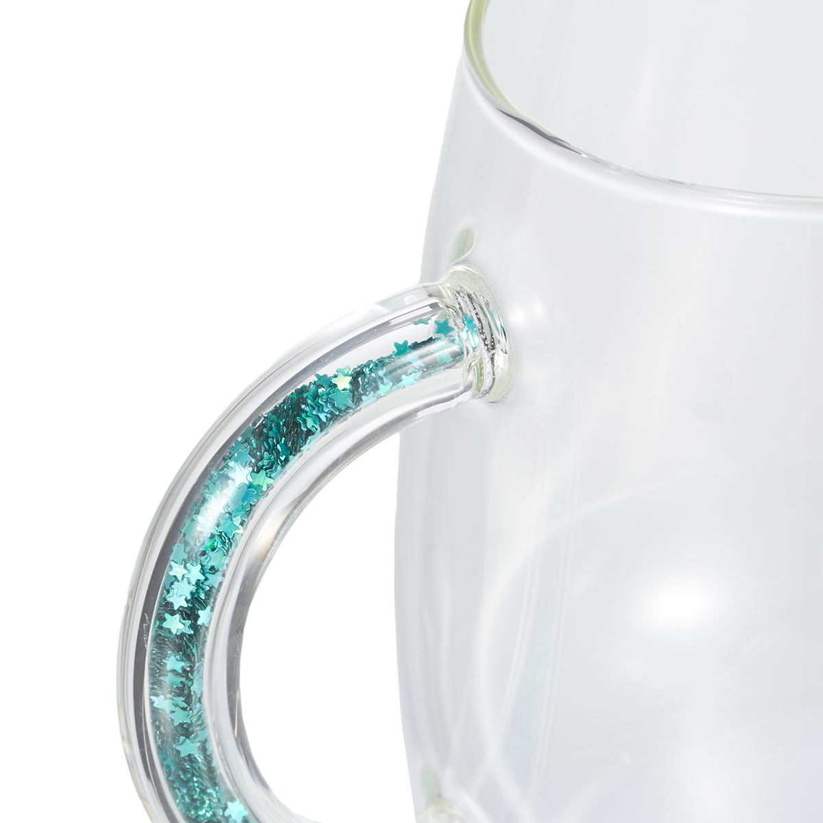 Декоративное наполнение внутри ручки в виде сверкающих синих звездочек создаст праздничное настроение и добавит яркий акцент сервировке.