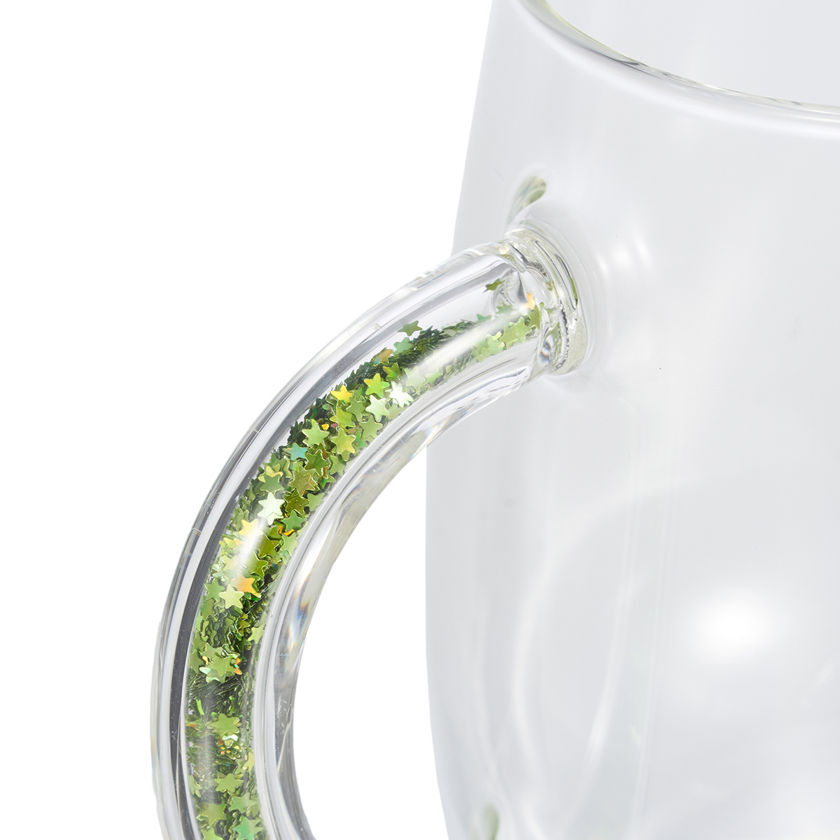 Декоративное наполнение внутри ручки в виде сверкающих зеленых звездочек создаст праздничное настроение и добавит яркий акцент сервировке.