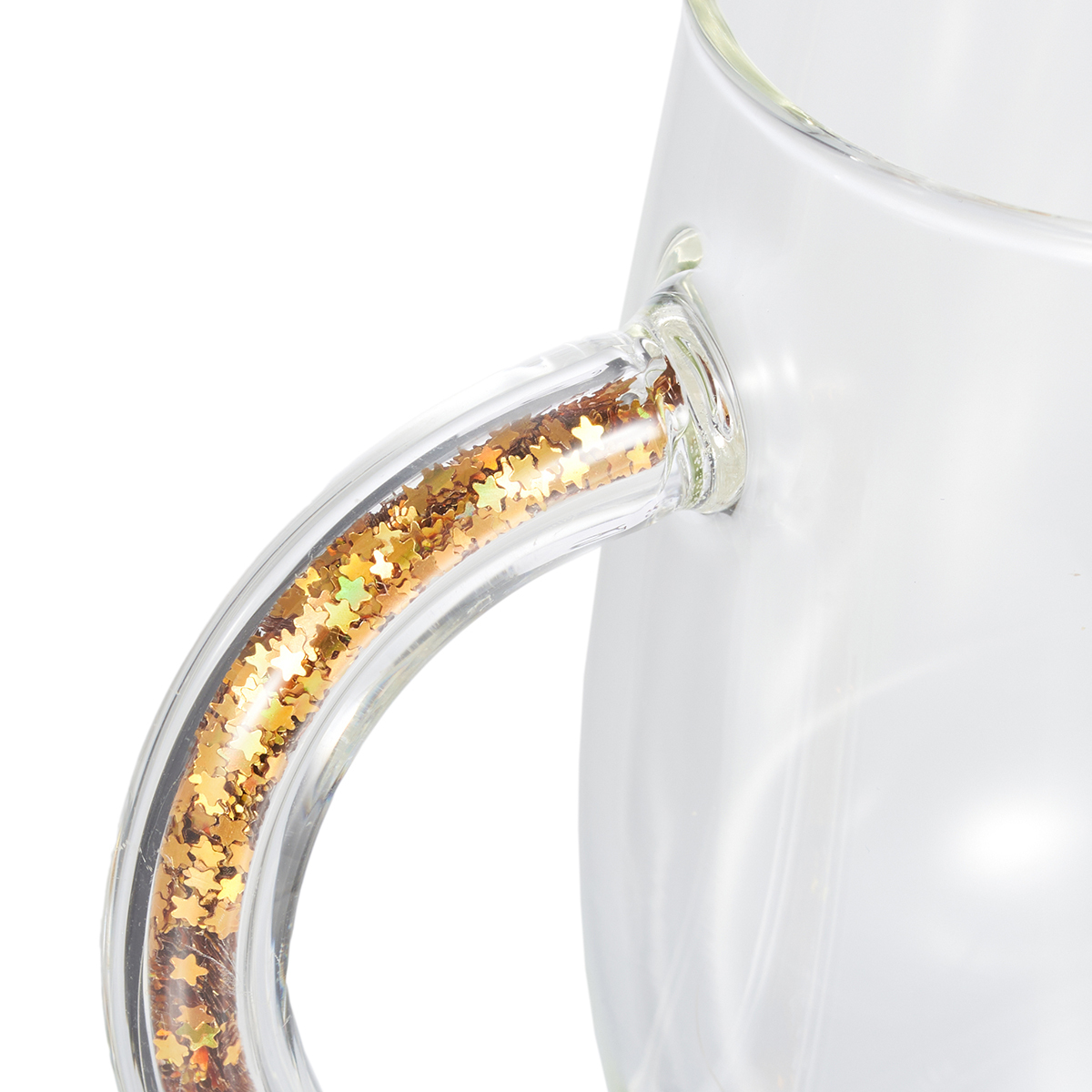 Декоративное наполнение внутри ручки в виде сверкающих золотых звездочек создаст праздничное настроение и добавит яркий акцент сервировке.