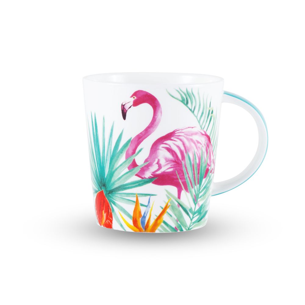 Фарфоровые кружки из коллекции Flamingo с изображением розовых фламинго в пальмовых листьях подарят атмосферу цветущего тропического утра даже самому обычному чаепитию. Кружки Flamingo имеют большой объем 450 мл, что придется по вкусу любителям долгих чайных церемоний или больших порций кофе с высокой шапкой молочной пены.