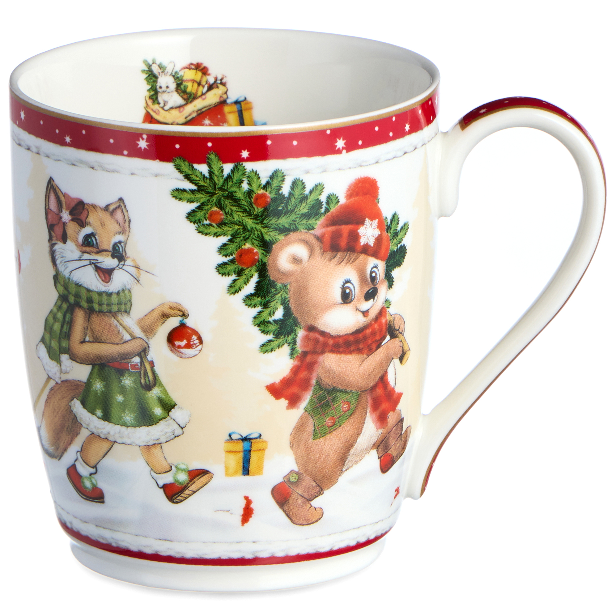 ТМ LEFARD New Year Collection для детей украсит праздничный новогодний стол и порадует Ваших детей в самые ожидаемые дни в году. С 1699 года указам Петра Первого Новый год празднуется в ночь на 1 января каждого года (по юлианскому календарю). Символом праздника стал дедушка с белой бородой, имя которого - Дед Мороз, и его помощница - девочка из снега по имени Снегурочка. Изделия с любимыми персонажами, лесными жителями и нарядной новогодней Елкой в веселом хороводе выполнены на тонкостенном высококачественном фарфоре. Посуда упакована в яркие коробки. Это прекрасный подарок. Продукция прошла сертификацию, безопасна для контакта с пищевыми продуктами. Можно использовать в СВЧ, не рекомендуется мыть в посудомоечных машинах во избежание повреждения золотой отводки (деколи) на изделиях.