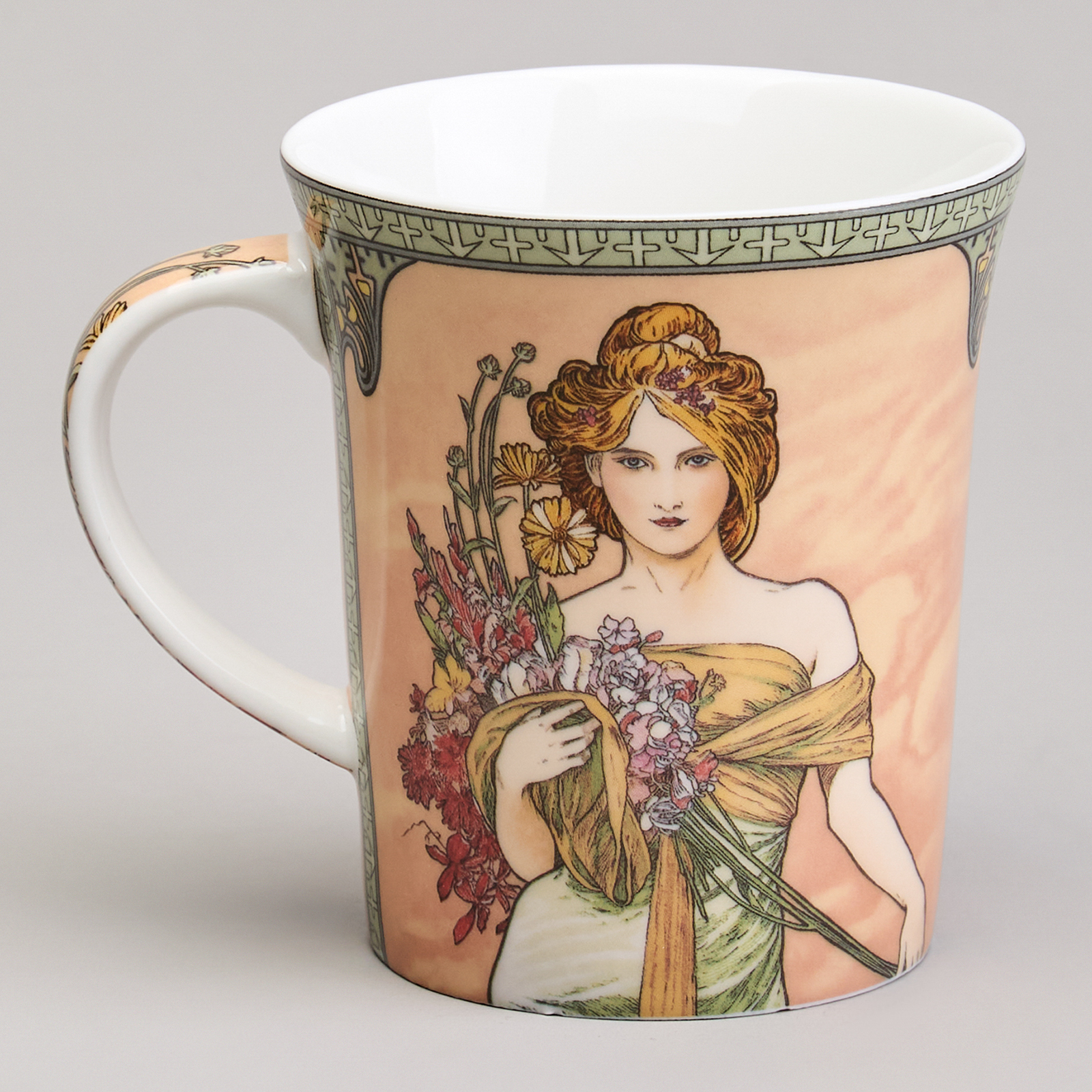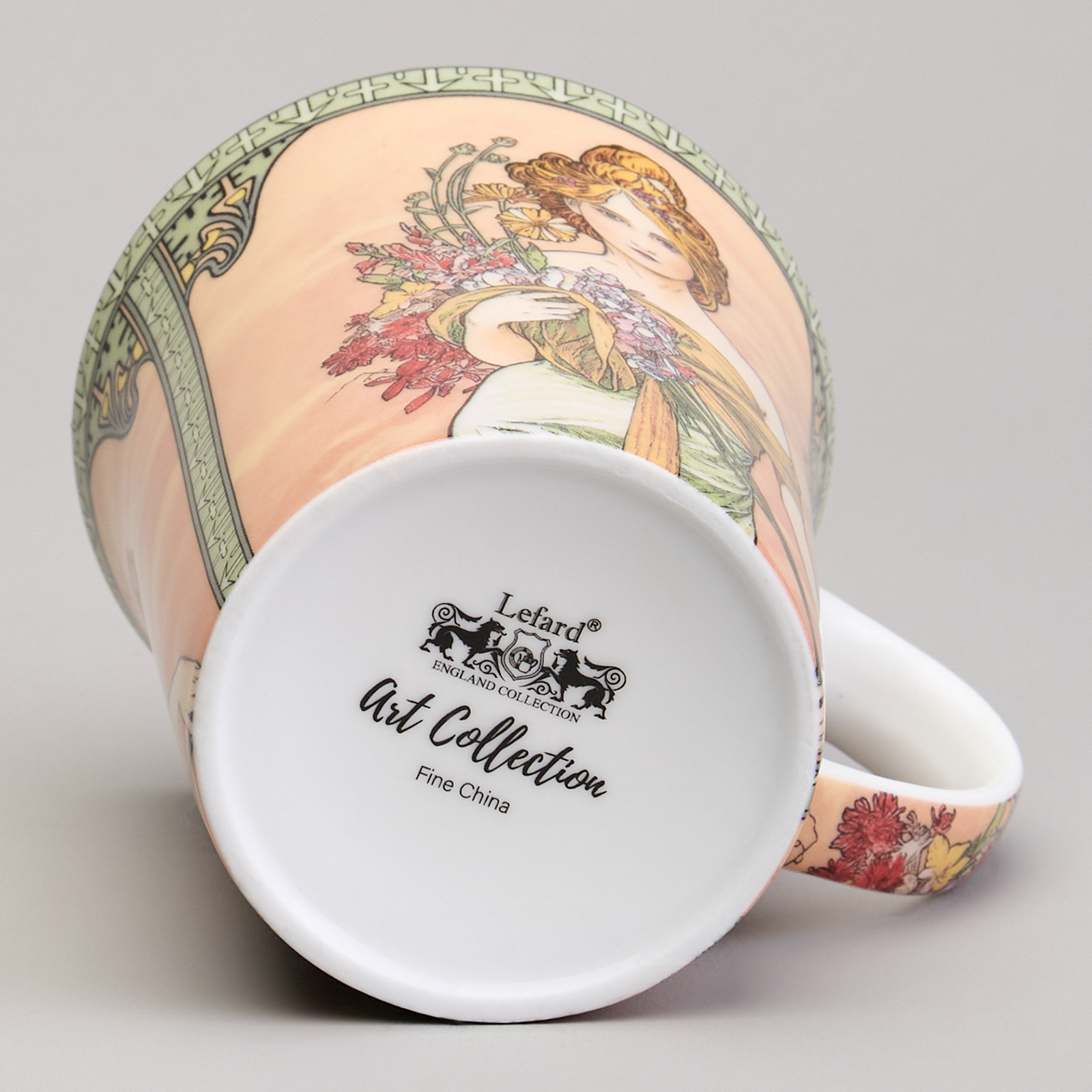 Арт Коллекция для ценителей прекрасного. Изделия из тонкостенного фарфора. Посуда прошла сертификацию, безопасна для контакта с пищевыми продуктами. Декор по мотивам картин Альфонса Мария Мухи. Удобная форма. Отличный подарок. Можно использовать в микроволновой печи и мыть в посудомоечной машине.
