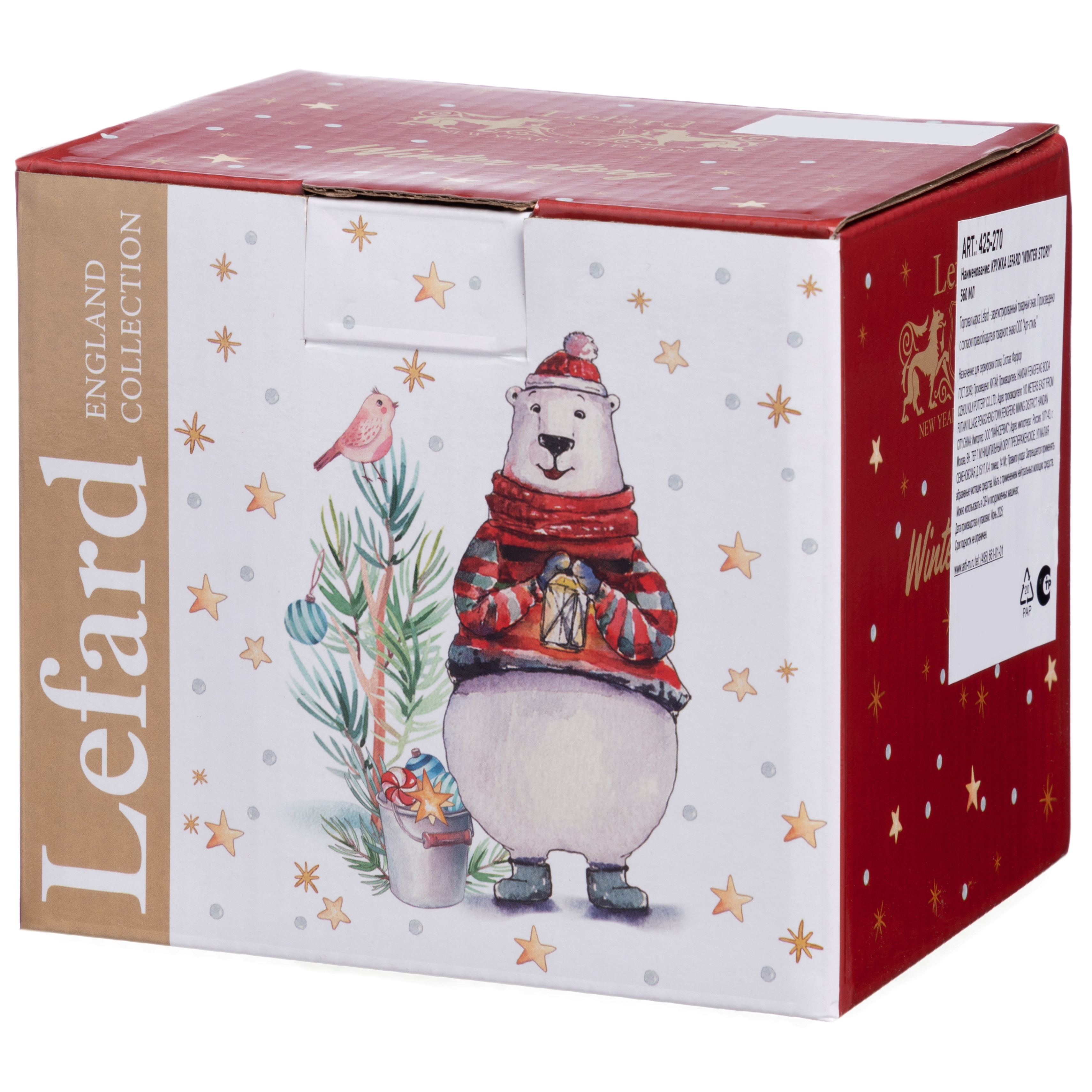 ТМ LEFARD посуда коллекции Winter Story (Зимняя история) создаст в вашем доме праздничную и веселую атмосферу новогоднего праздника. Каждый предмет коллекции рассказывает трогательную историю дружбы обитателей сказочного зимнего леса. Забавные персонажи понравятся не только детям, но и взрослым. Сочетание рельефа и гладких форм удовлетворит любой вкус и украсит любой стол. Продается в красивой индивидуальной упаковке. Подходит для подарка. Посуда изготовлена из качественного фарфора. Продукция сертифицирована и безопасна для контакта с пищевыми продуктами. Можно ставить в микроволновую печь и мыть в посудомоечной машине.