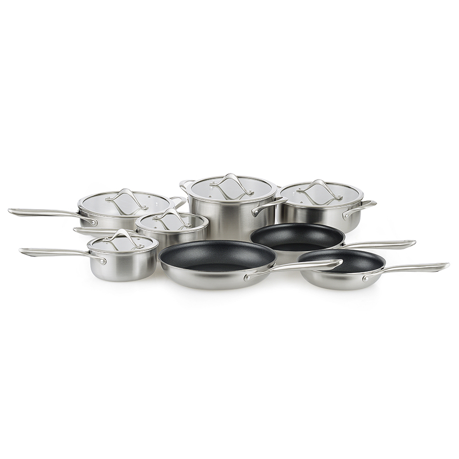 - Ободок из нержавеющей стали препятствует образованию сколов, а ручка не нагревается во время приготовления пищи.