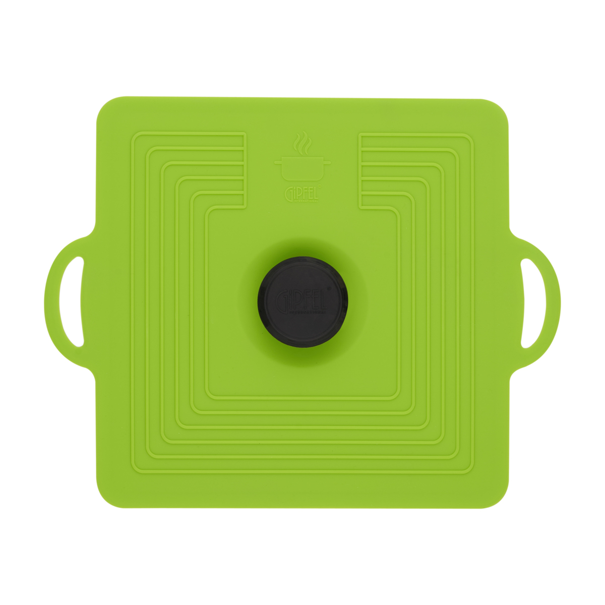 Крышка силиконовая Gipfel MAGDALINA 9363. Квадратная крышка размером 28х28 см. Крышка выполнена из зеленого силикона и имеет ручки с двух сторон.