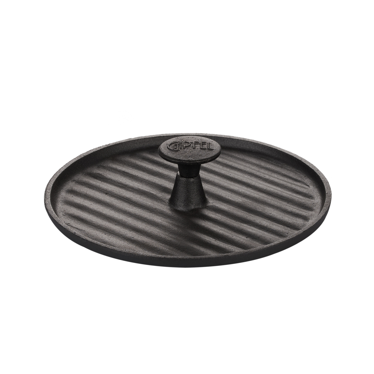 Крышка-пресс чугунная Gipfel Diletto 2241 24 см. Круглая крышка диаметром 24см имеет толщину 4мм. Крышка сделана из чугуна. Для приготовления блюд под прессом необходима крышка для сковороды-гриль. Используется как на плите, так и в духовке. Изделие работает, как классический пресс для сковороды, позволяя продуктам питания равномерно прогреться и получить хрустящую румяную корочку. Крышка-пресс должна закрывать непосредственно продукт, придавливая его, поэтому она должна быть меньше диаметра сковороды.