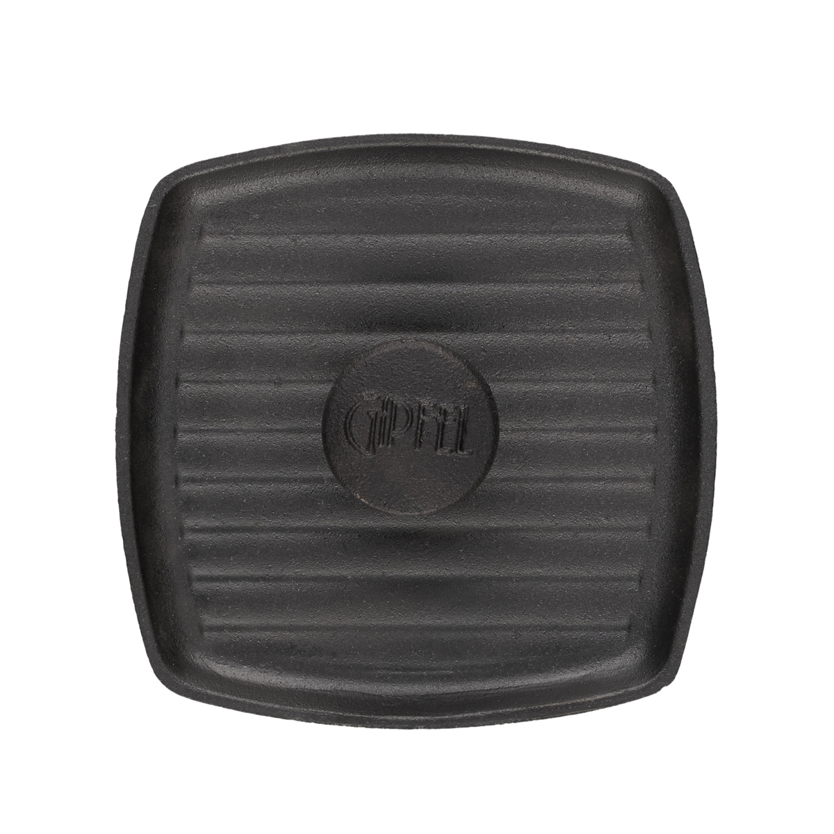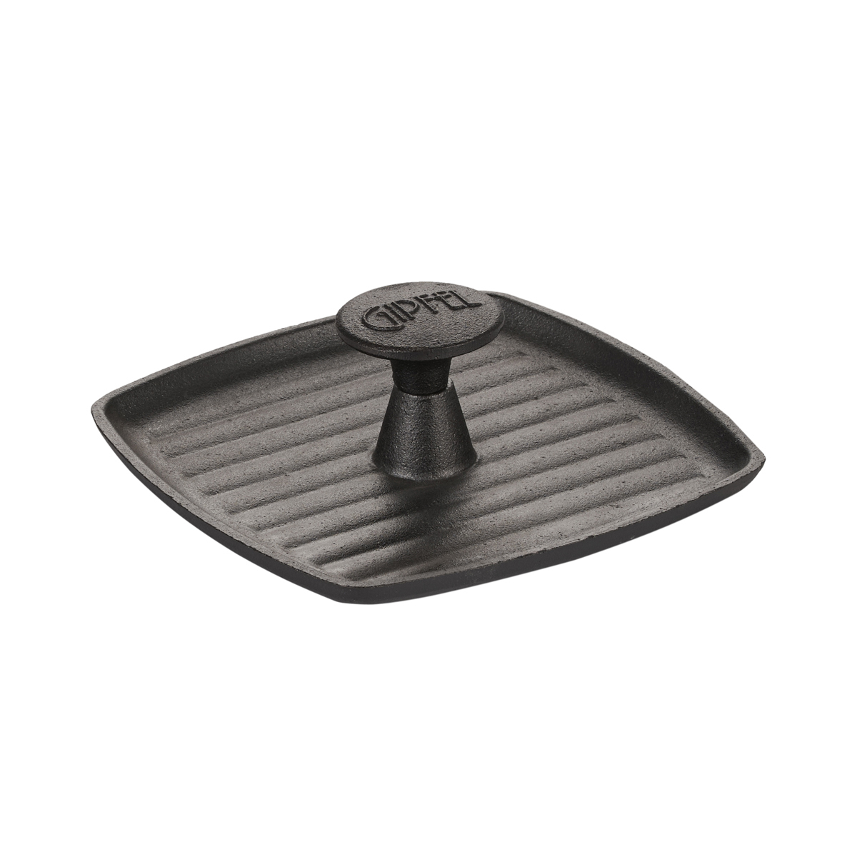 Крышка-пресс чугунная Gipfel Diletto 2242, квадратная 18см. Для приготовления блюд под прессом необходима крышка для сковороды-гриль. Используется как на плите, так и в духовке. Изделие работает как классический пресс для сковороды, позволяя продуктам питания равномерно прогреться и получить хрустящую румяную корочку. Размер модели — 18 × 18 см — делает ее совместимой с посудой всех диаметров.