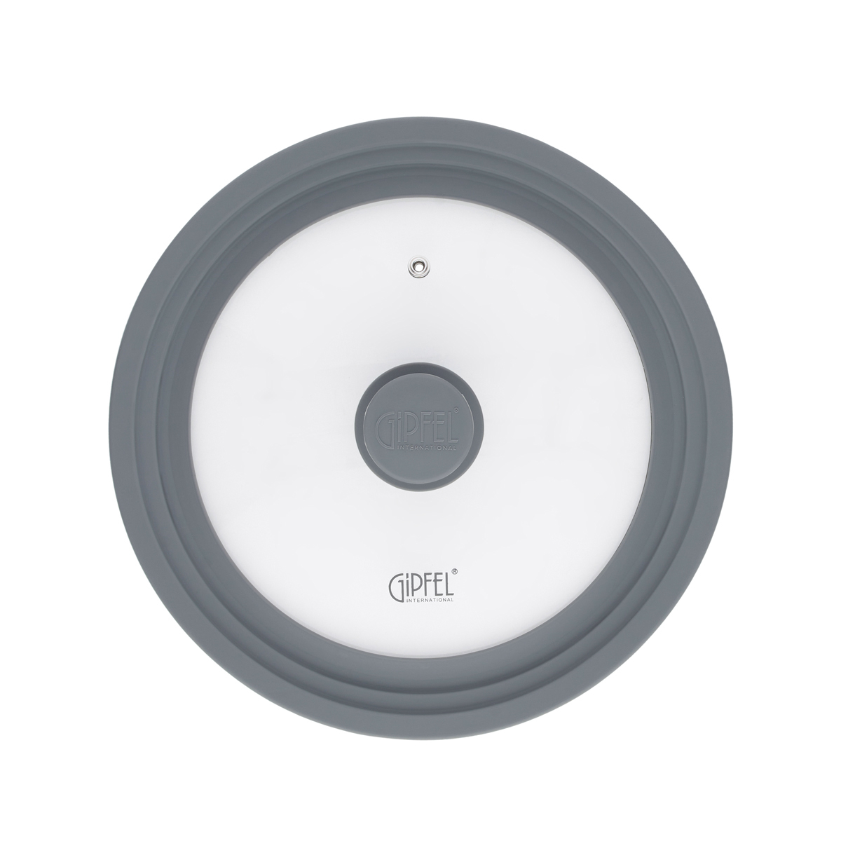 Крышка стеклянная Gipfel Gium 1028. Крышка универсальная, рассчитана на три диаметра сковород: 22,24,26см. У крышки силиконовый обод серого цвета, что позволяет использовать ее с посудой, имеющей антипригарное покрытие, не боясь его повредить. Сделана из закаленного стекла и имеет не нагревающуюся силиконовую ручку. Крепление ручки из нержавеющей стали 18/8 не заржавеет и прослужит долго. В крышке имеется отверстие для выхода пара из нержавеющей стали.