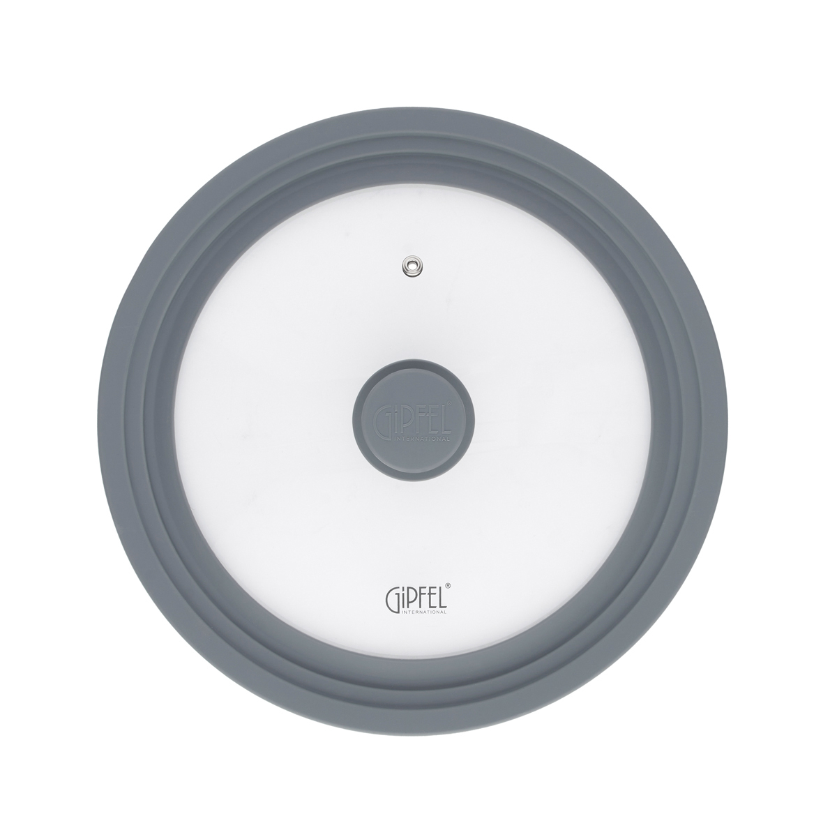 Крышка стеклянная Gipfel Gium 1029. Крышка универсальная, рассчитана на три диаметра сковород: 24,26,28см. У крышки силиконовый обод серого цвета, что позволяет использовать ее с посудой, имеющей антипригарное покрытие, не боясь его повредить. Сделана из закаленного стекла и имеет не нагревающуюся силиконовую ручку. Крепление ручки из нержавеющей стали 18/8 не заржавеет и прослужит долго. В крышке имеется отверстие для выхода пара из нержавеющей стали.
