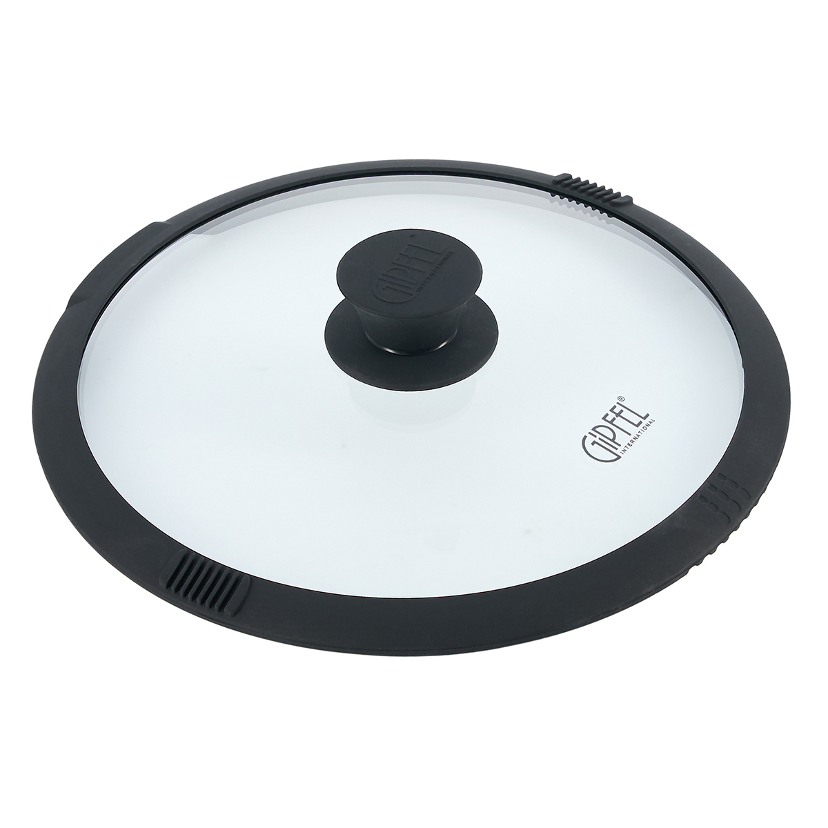 Крышка стеклянная PAULA GIPFEL 1049 с силиконовым ободом и силиконовой ручкой. Диаметр крышки 24 см. Крышка сделана из закаленного стекла толщиной 4 мм. Крышка имеет силиконовый обод черного цвета, что делает ее пригодной для использования с любой посудой, даже имеющей антипригарное покрытие: крышка не поцарапает края и при этом будет плотно прилегать. У крышки с двух сторон имеется рифленая поверхность для упора большими пальцами, если вам нужно, например, слить из кастрюли воду. Также имеется отверстие для удобного слива.