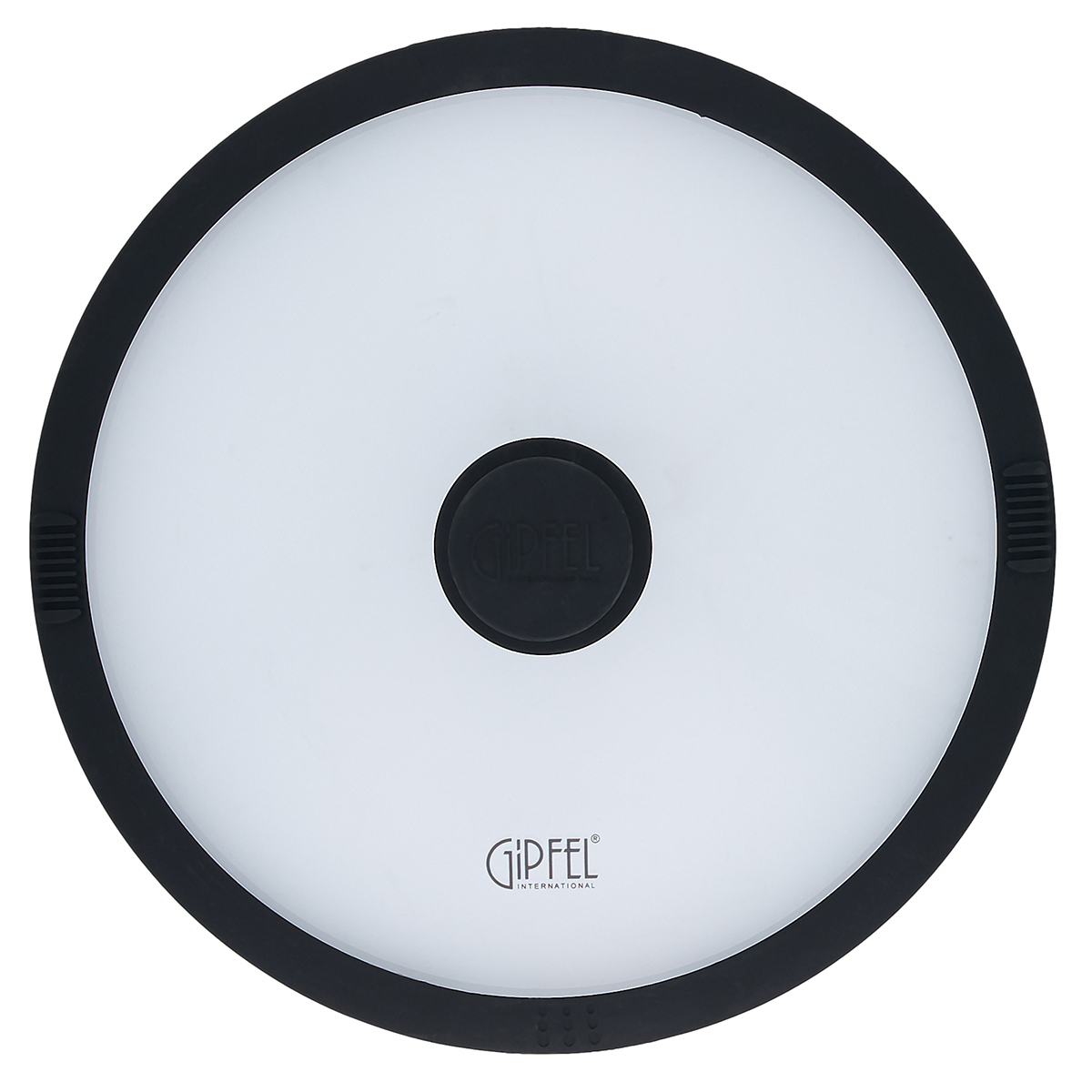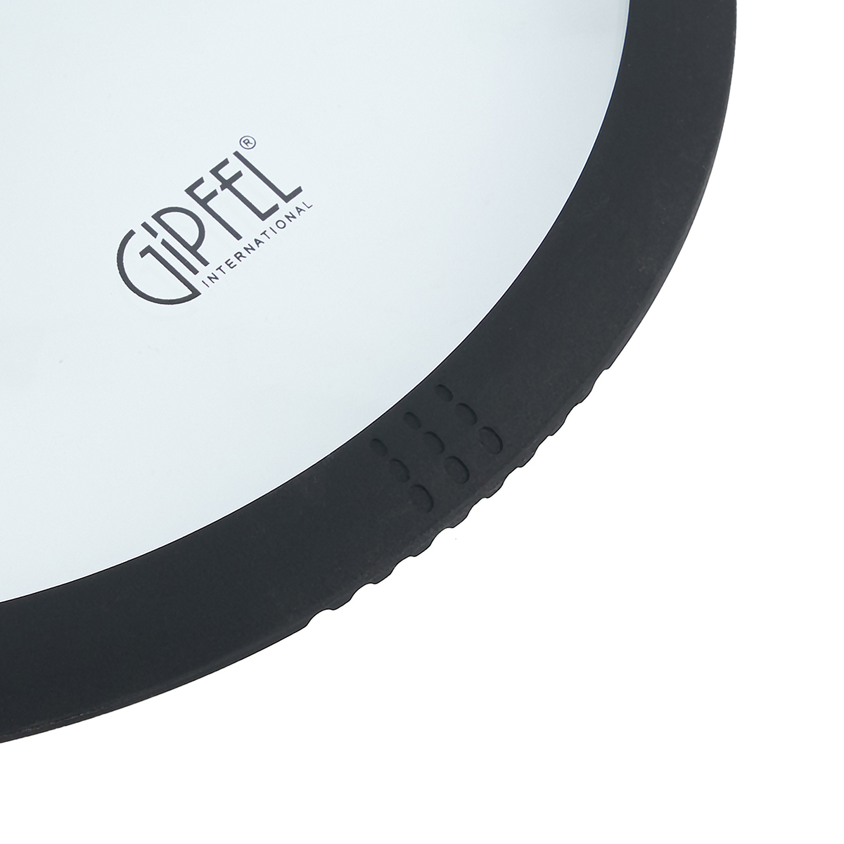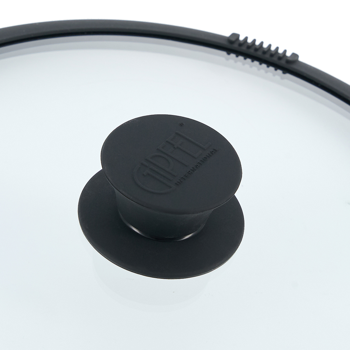 Крышка стеклянная PAULA GIPFEL 1050 с силиконовым ободом и силиконовой ручкой. Диаметр крышки 26 см. Крышка сделана из закаленного стекла толщиной 4 мм. Крышка имеет силиконовый обод черного цвета, что делает ее пригодной для использования с любой посудой, даже имеющей антипригарное покрытие: крышка не поцарапает края и при этом будет плотно прилегать. У крышки с двух сторон имеется рифленая поверхность для упора большими пальцами, если вам нужно, например, слить из кастрюли воду. Также имеется отверстие для удобного слива.