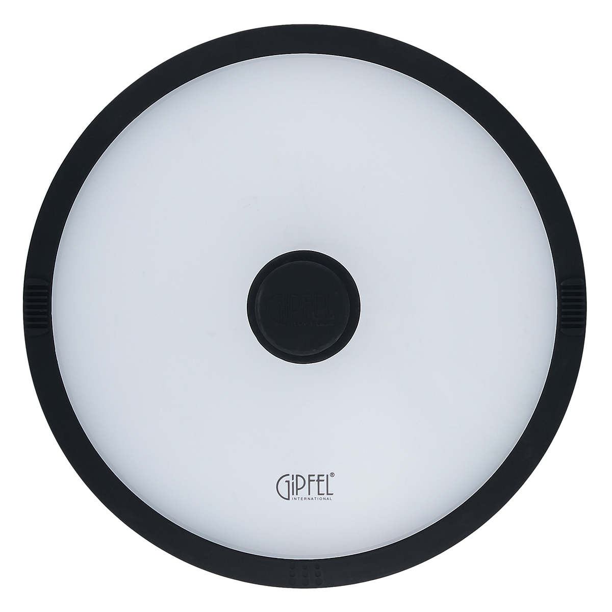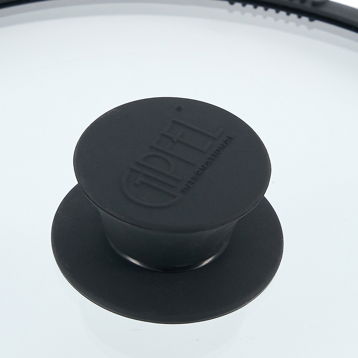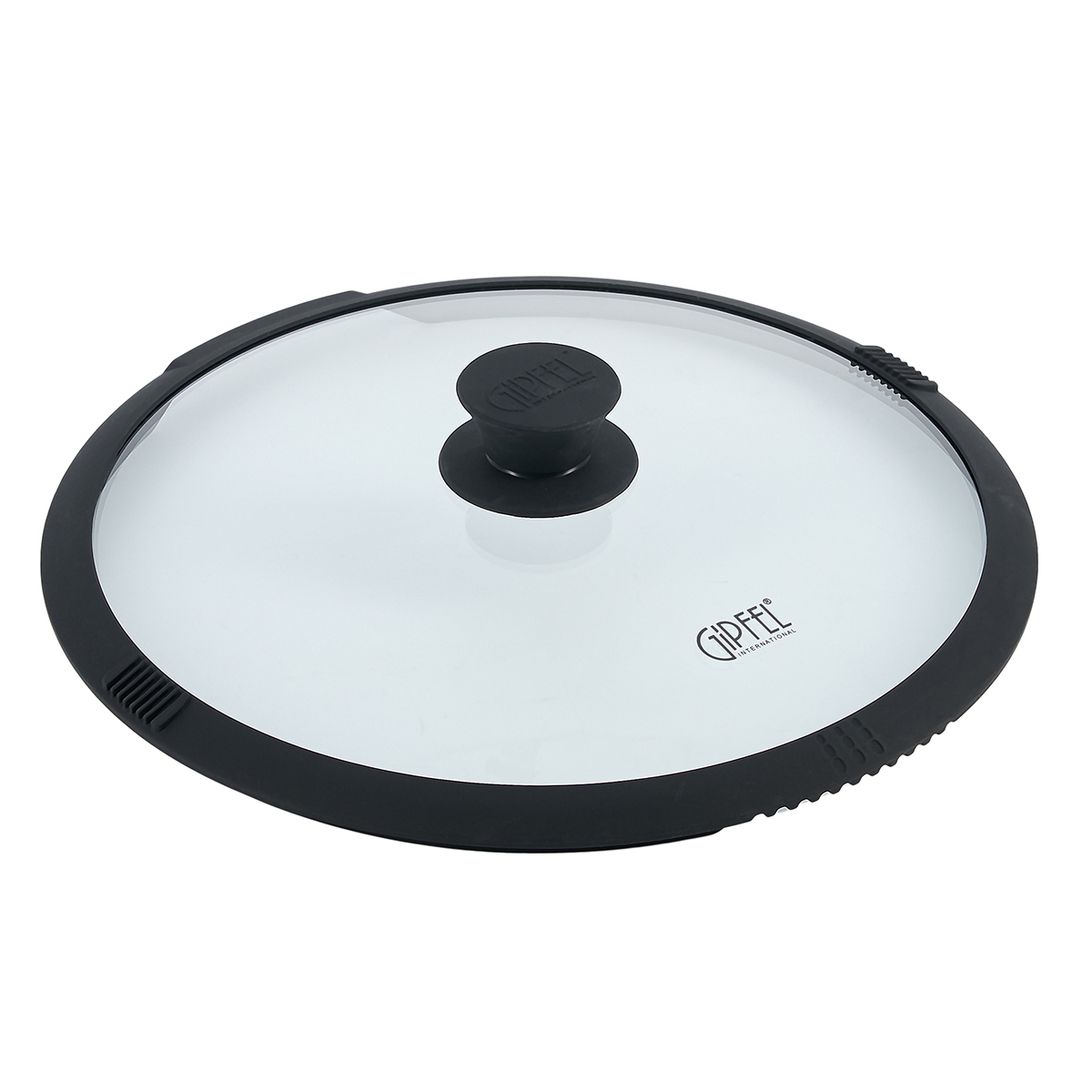 Крышка стеклянная PAULA GIPFEL 1051 с силиконовым ободом и силиконовой ручкой. Диаметр крышки 28 см. Крышка сделана из закаленного стекла толщиной 4 мм. Крышка имеет силиконовый обод черного цвета, что делает ее пригодной для использования с любой посудой, даже имеющей антипригарное покрытие: крышка не поцарапает края и при этом будет плотно прилегать. У крышки с двух сторон имеется рифленая поверхность для упора большими пальцами, если вам нужно, например, слить из кастрюли воду. Также имеется отверстие для удобного слива.