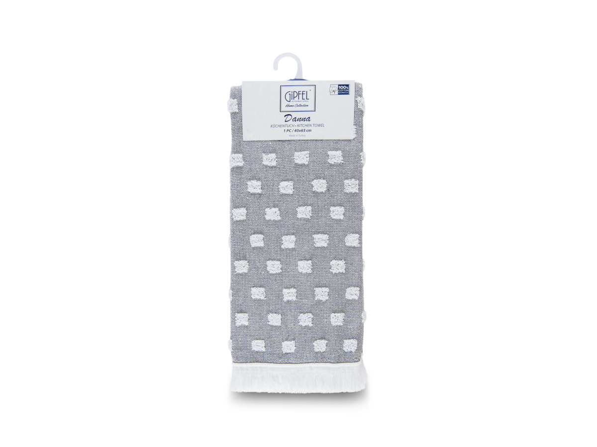 Полотенце кухонное Gipfel DANNA 40937. Размер 40х65 см. Полотенце сделано из 100% хлопка серого цвета, плотность нити 330 гр/м2. Полотенце из натурального материала отлично впитывают жидкость и быстро сохнет. Его также можно использовать в качестве прихватки.