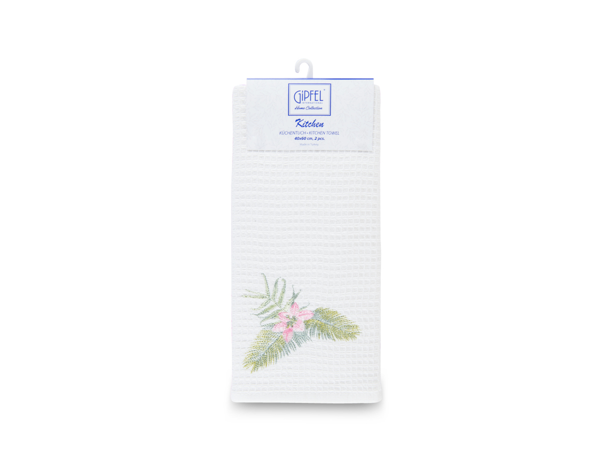 Набор полотенец Gipfel Kitchen 40789. В наборе 2 хлопковых полотенца с вышитым цветочным рисунком. Полотенца выполнены из 100% хлопка, плотность нитей 350 г/м2. Размер полотенец 40x60см. Вафельные полотенца известны своей универсальностью. Ими удобно протирать стекло, ведь они не оставляют ворсинок. Также их можно использовать, как прихватки. Во время застолья такое полотенце удобно положить на колени, оно убережет одежду и его можно использовать в качестве салфетки. Полотенца из натурального материала отлично впитывают жидкость и быстро сохнут.