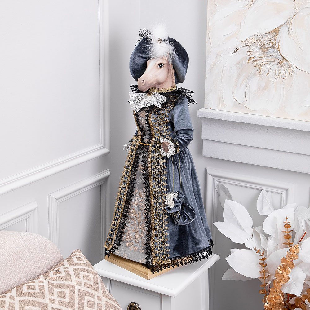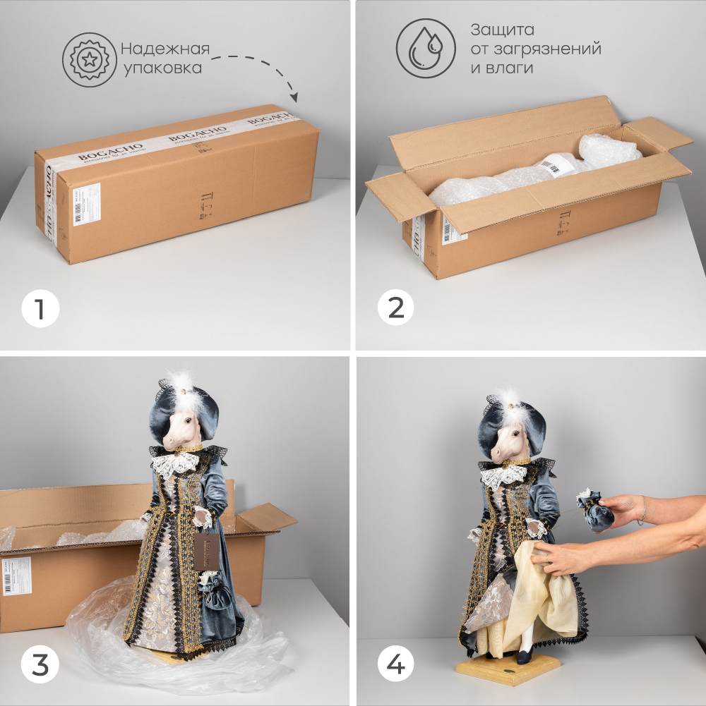 Описание:«Виконтесса» – это утончённый символ светского шика и безупречного вкуса. Коллекционная кукла представляет собой грациозную лошадь в роскошном бальном платье с элегантной шляпкой и миниатюрной сумочкой, где каждая деталь отражает статус и изысканность.