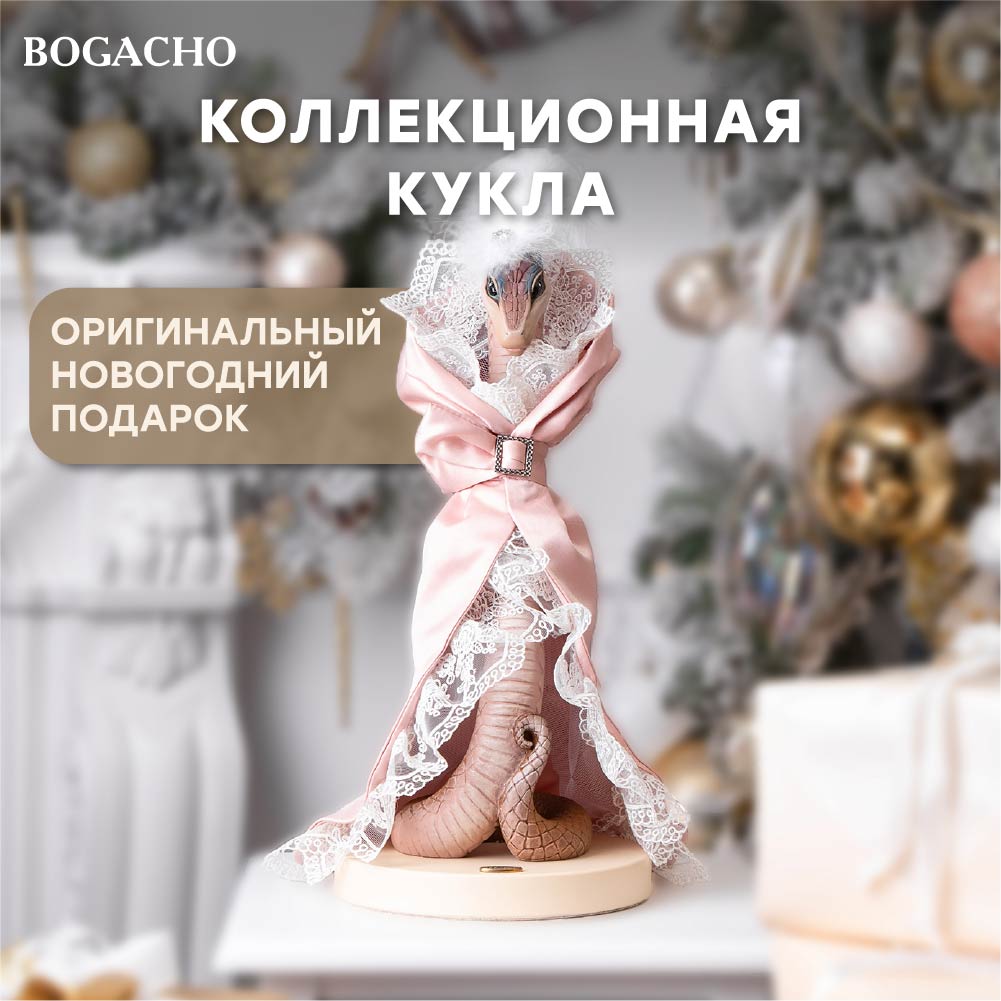 ДАРИТЕ ЭМОЦИИ И РАДОСТЬ! Интерьерные коллекционные куклы лучшее украшение дома и самый теплый и оригинальный подарок тем, кого вы любите. Наша авторская кукла, не просто игрушка, но и стильный аксессуар для интерьера. Коллекционная статуэтка Змея выполнена мастерами Bogacho из высококачественного мрамора, который привозится в виде мраморной крошки, затем отливается в формы и раскрашивается акриловыми красками вручную. При пошиве костюма используются европейские ткани. Каждая деталь изделия и костюма выполнена вручную. Фирменный шильд BOGACHO подчеркнёт эксклюзивность подарка. Наша авторская кукла – не детская игрушка. Она отлично подойдет для взрослых. Дизайнерская статуэтка для интерьера станет отличным украшением для дома, квартиры, дачи и органично впишется в любой стиль, от прованс до скандинавского. Прекрасно смотрится в гостиной, спальне, детской, прихожей или даже на кухне. Оберег для дома символ года Змея сочетается с любым интерьером, станет отличным новогодним украшением, новогодним декором и подарком на Новый год или Рождество. По восточному календарю Змея символ года 2025 года-талисман удачи! Новогодний сувенир, символ года, год Змеи, создаст атмосферу праздника. Сделайте оригинальный новогодний подарок для себя или близких в виде Символа года. Нельзя придумать подарок лучше на такие важные события в жизни, как день рождения или крещение ребенка. Скульптура станет милым знаком внимания доктору или коллегам по работе. Каждый стильный сувенир изготавливается вручную, с любовью и душой, поэтому она дарит только положительные эмоции. Наши куклы вызывают моментальное привыкание: Вы влюбитесь в них с первого взгляда. Коллекционная кукла — это оригинальный подарок сувенир мужчине, мужу, папе, боссу, руководителю, маме, подруге, девушке, бабушке, женщине, сестре, коллеге. Мы уверены, что этот подарок станет самым желанным как для женщин, так и для мужчин. Декор для дома станет настоящим украшением любого. Дарите радость Вашим близким!