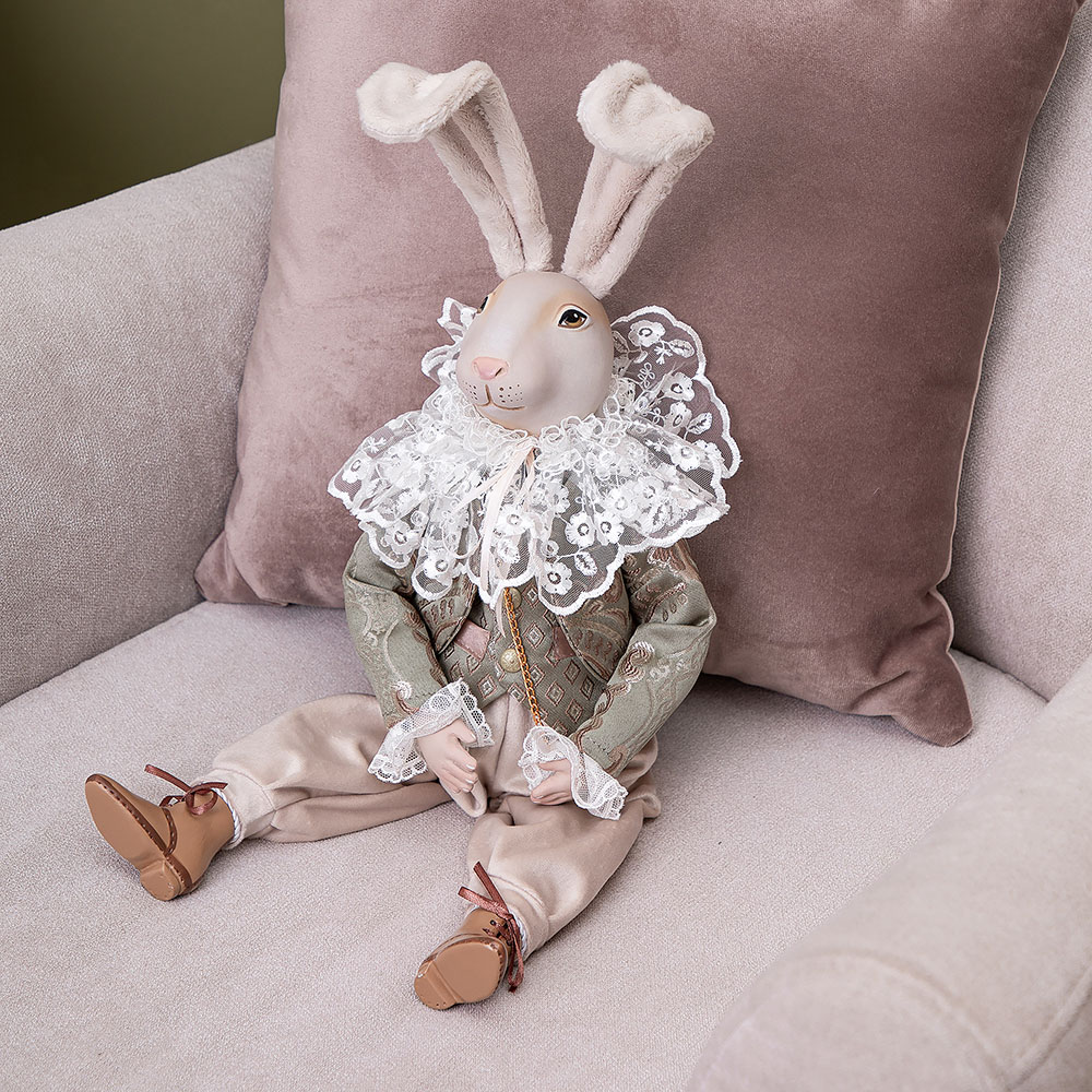 Коллекционная кукла BOGACHO Братец Кролик Олива (ручная работа) - это не просто предмет интерьера, а настоящее произведение искусства.Каждая коллекционная кукла производится тиражом не более 500 экземпляров. Голова игрушки отлита из натурального коелгинского мрамора, отшлифована и разрисована вручную.Одежда отшивается в собственном текстильном цеху по дизайнерским выкройкам.